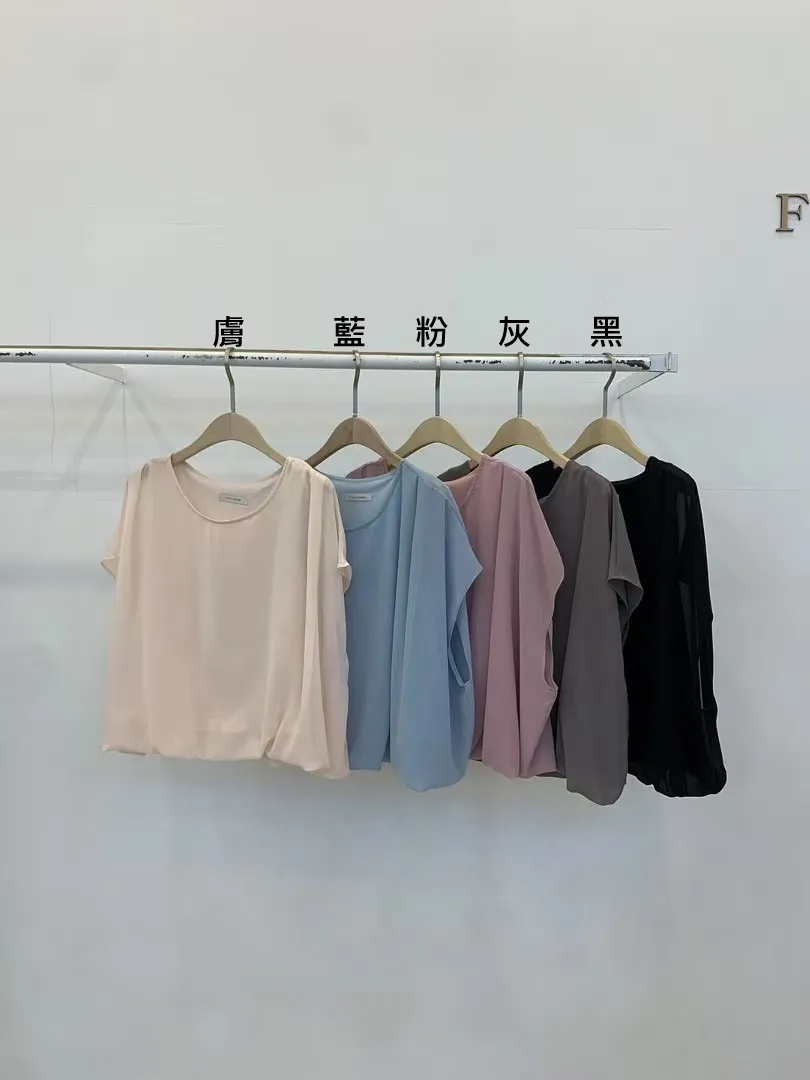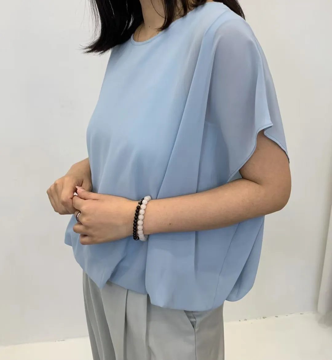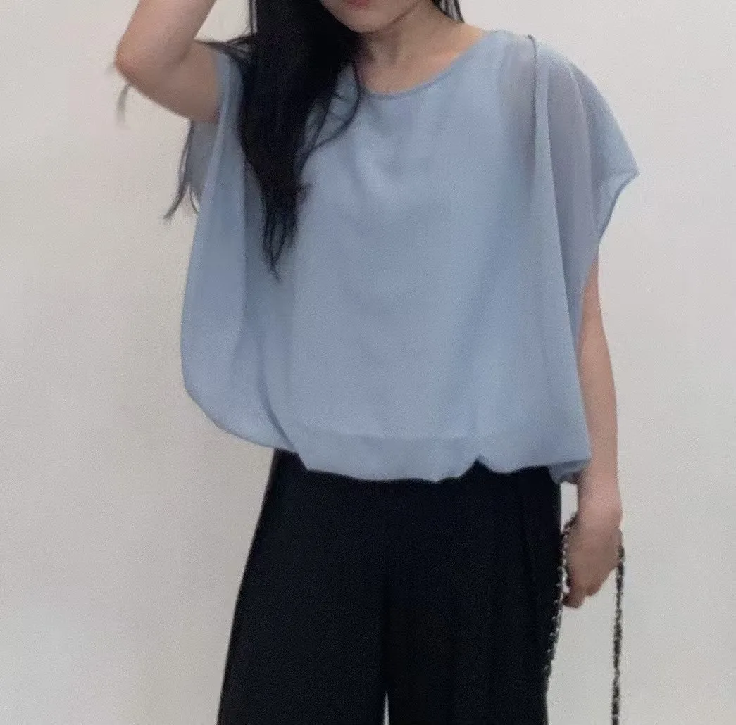 高級雪紡 若隱若現手袖 彈性背心內裡 下擺立體縫合線 藏肉顯瘦