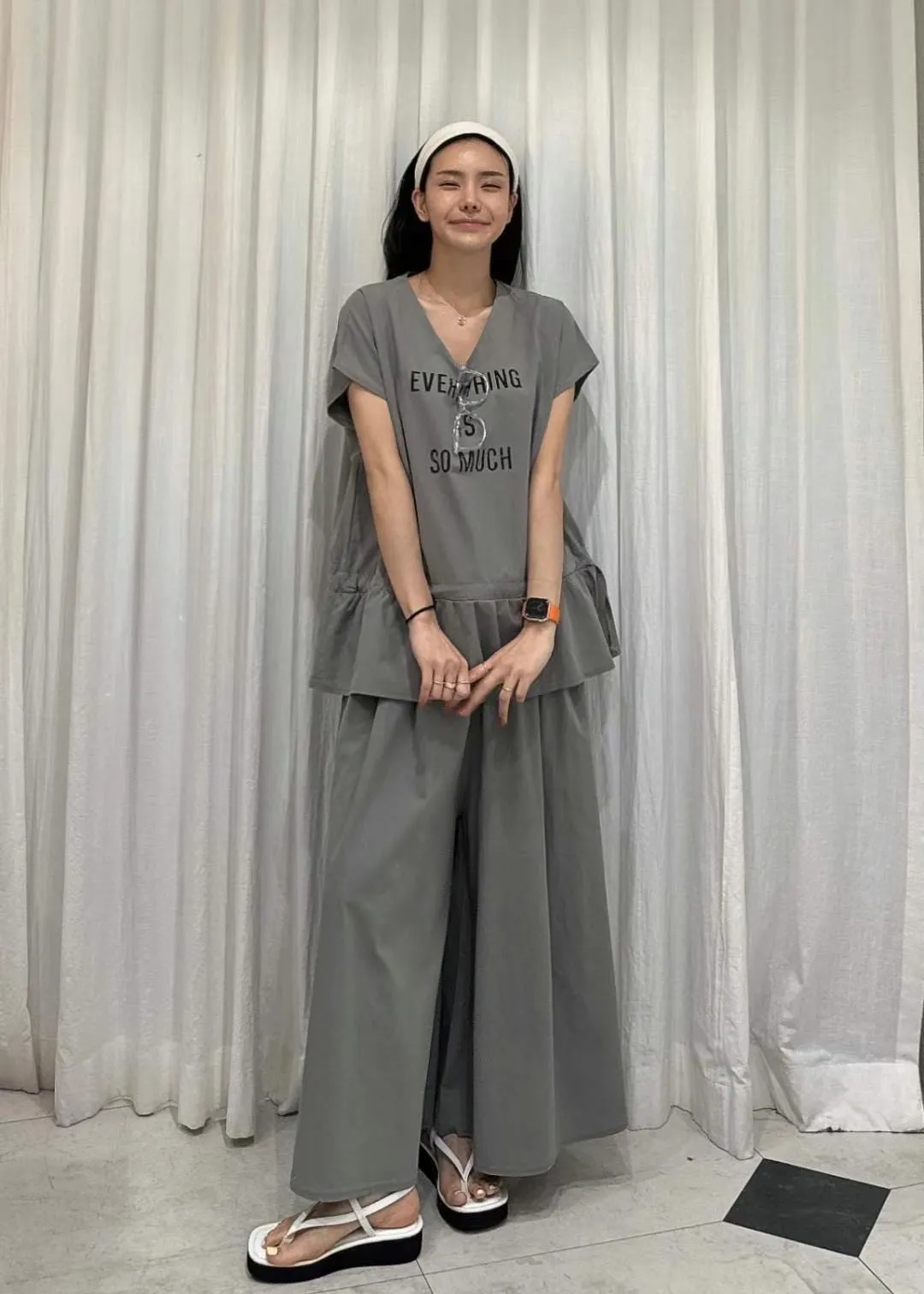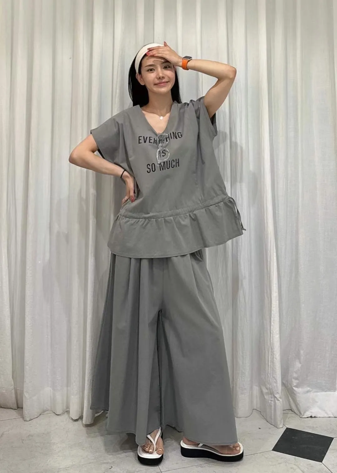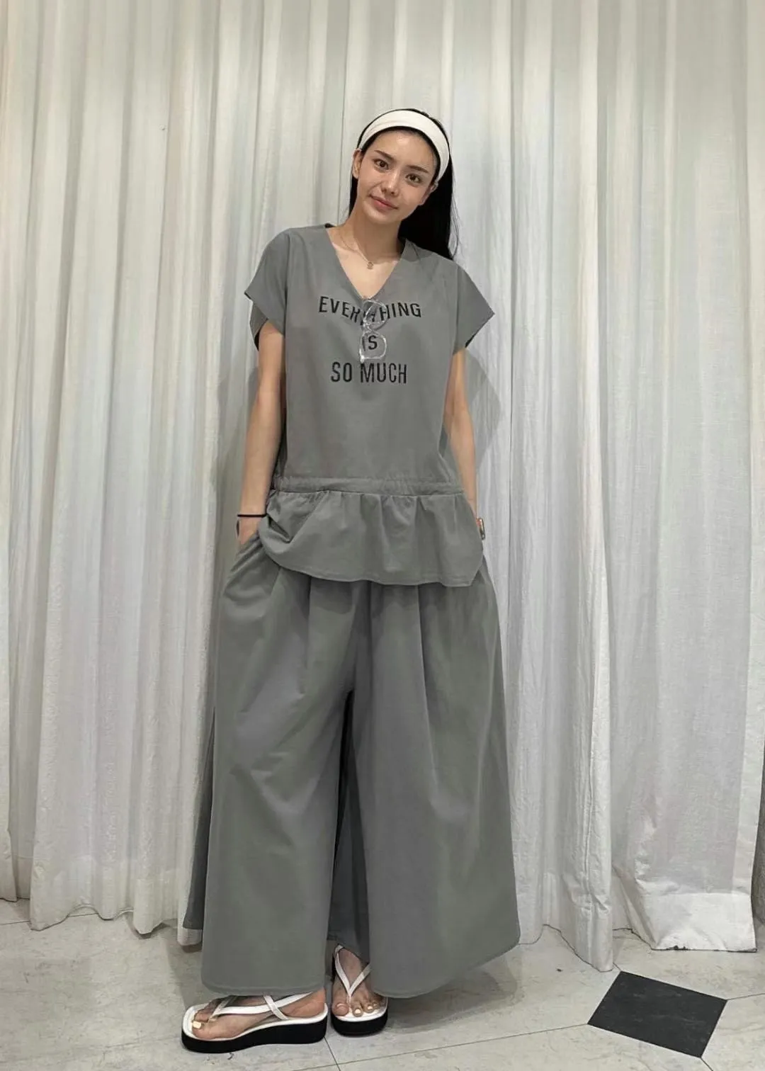 棉 上衣縮拉繩細腰 褲腰有鬆緊 有口袋 全腰鬆緊 褲管超大 空間佳有涼爽度