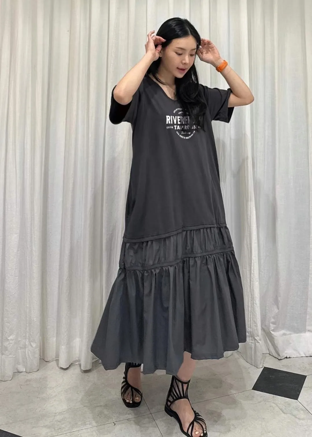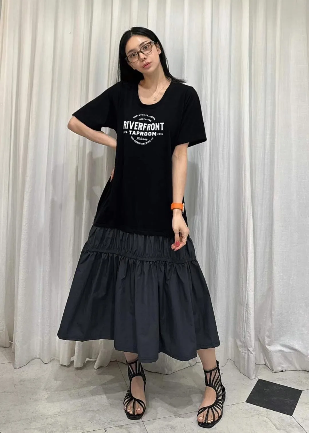 棉 透氣舒適竹節棉 減齡魚尾拼接 有口袋 適合熱天氣 寬U領