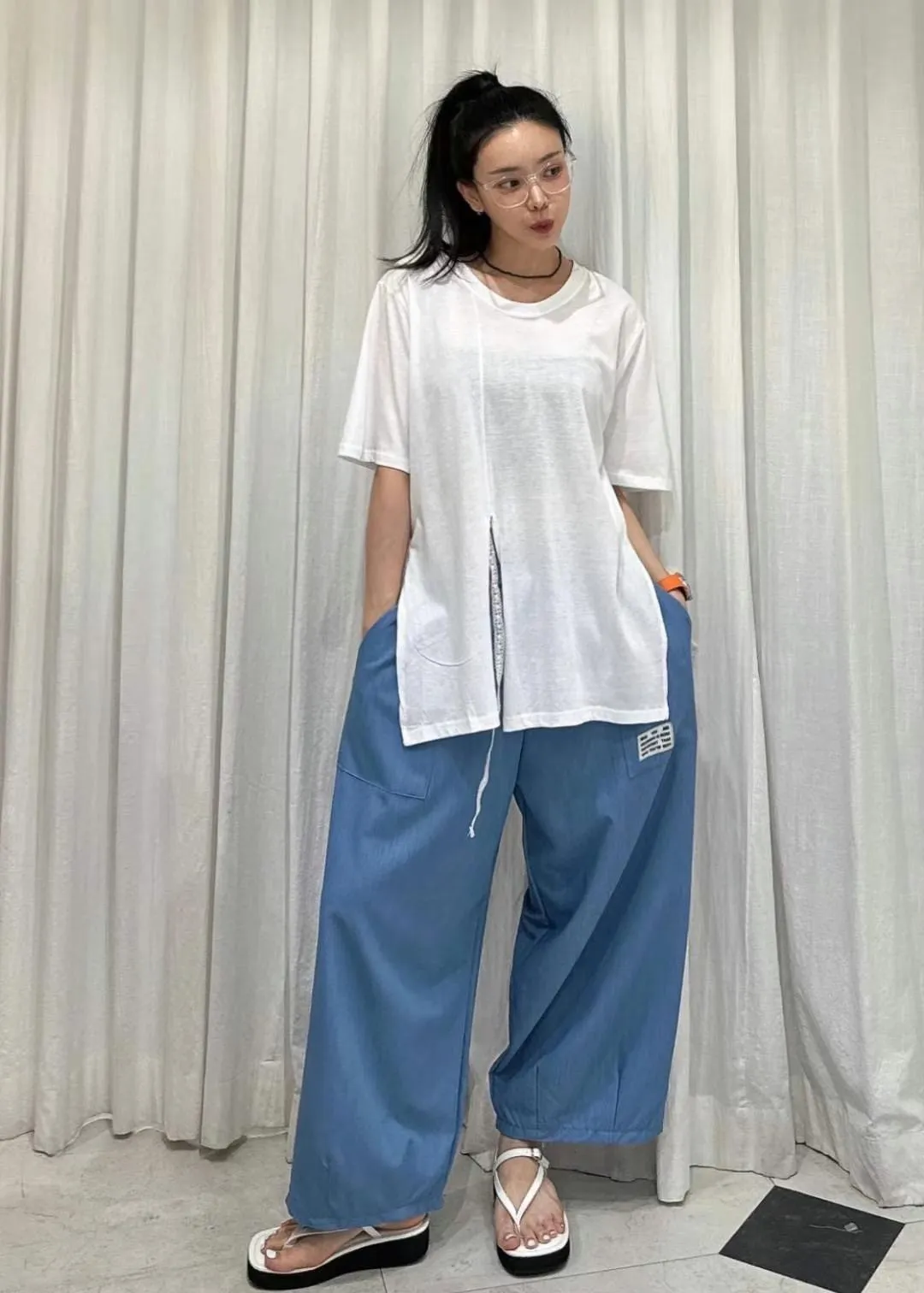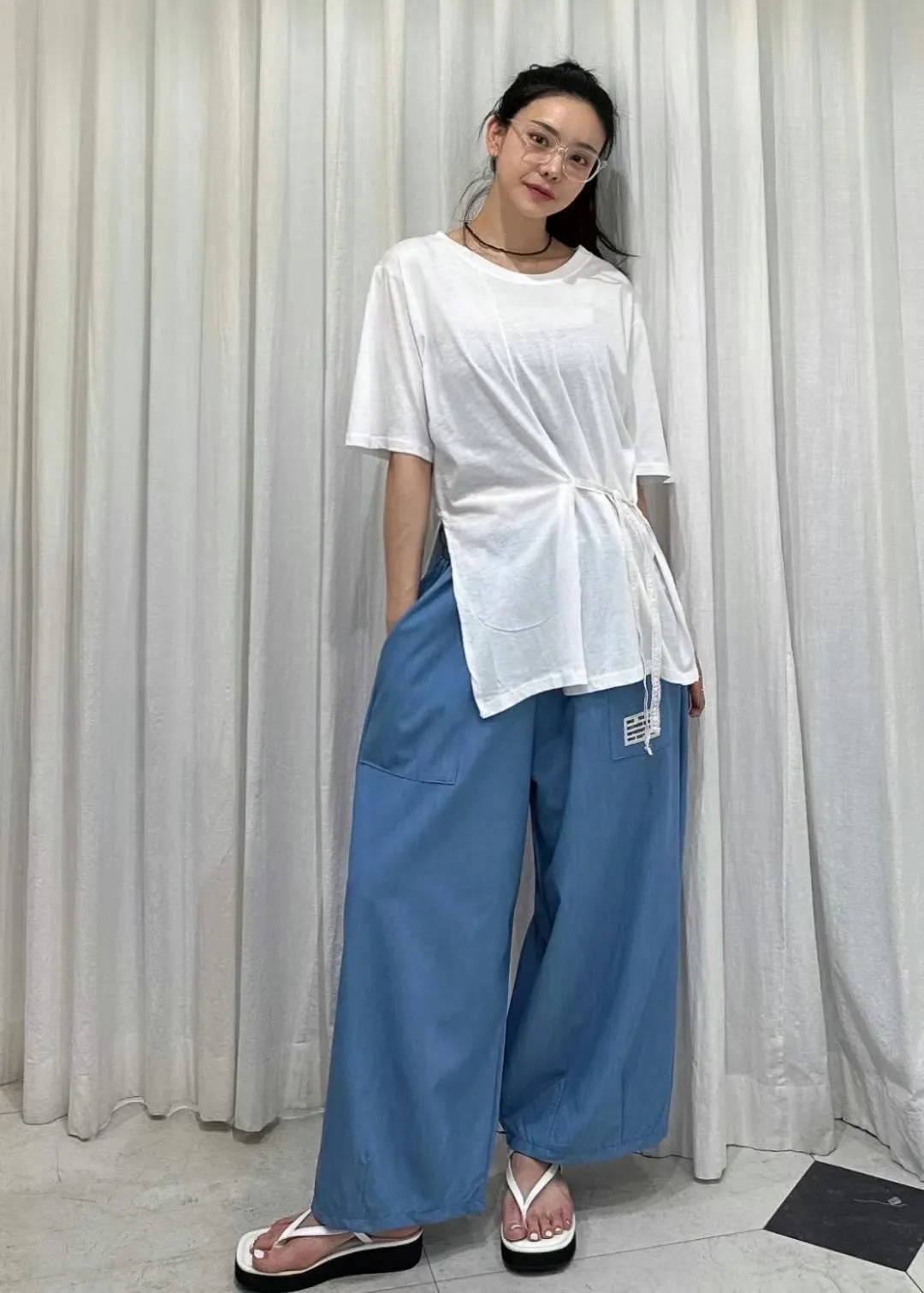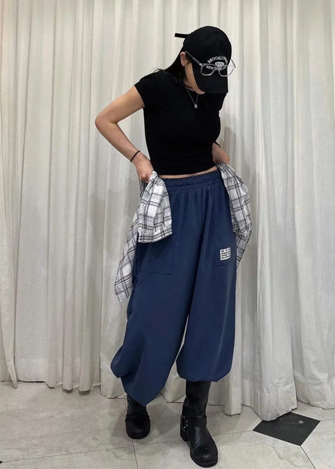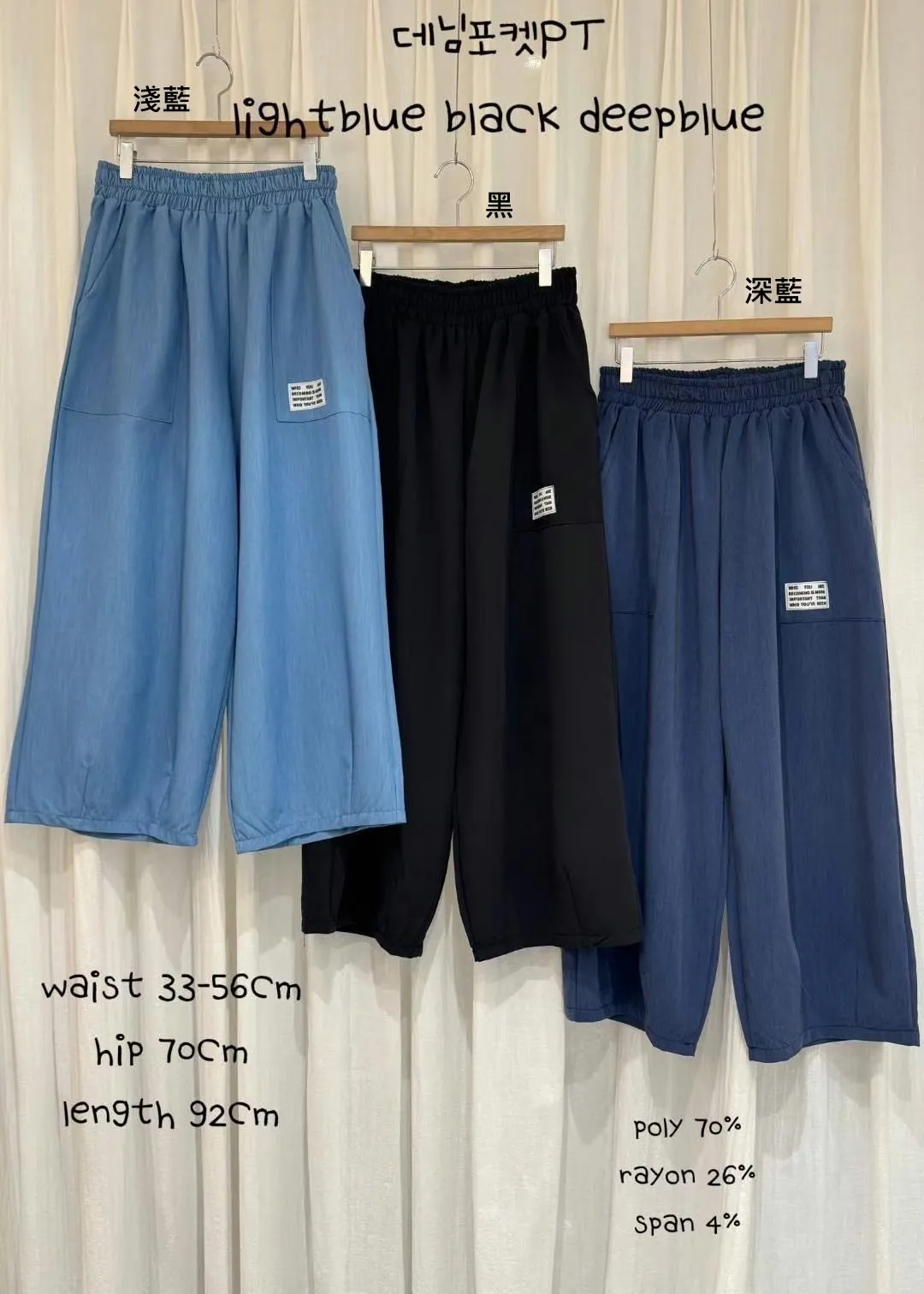 聚酯+縲縈+彈力 全腰鬆緊 英文小布標 口袋大容量 不易皺面料