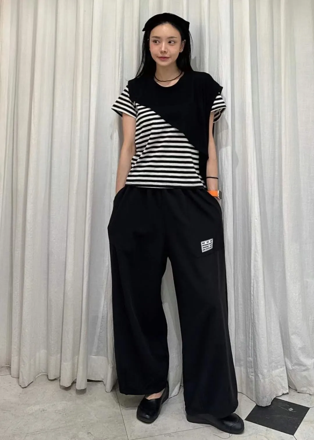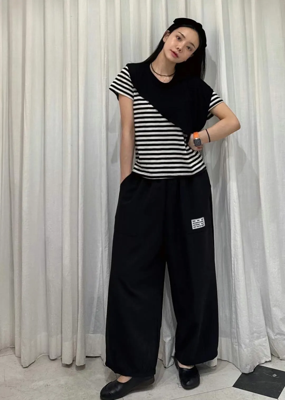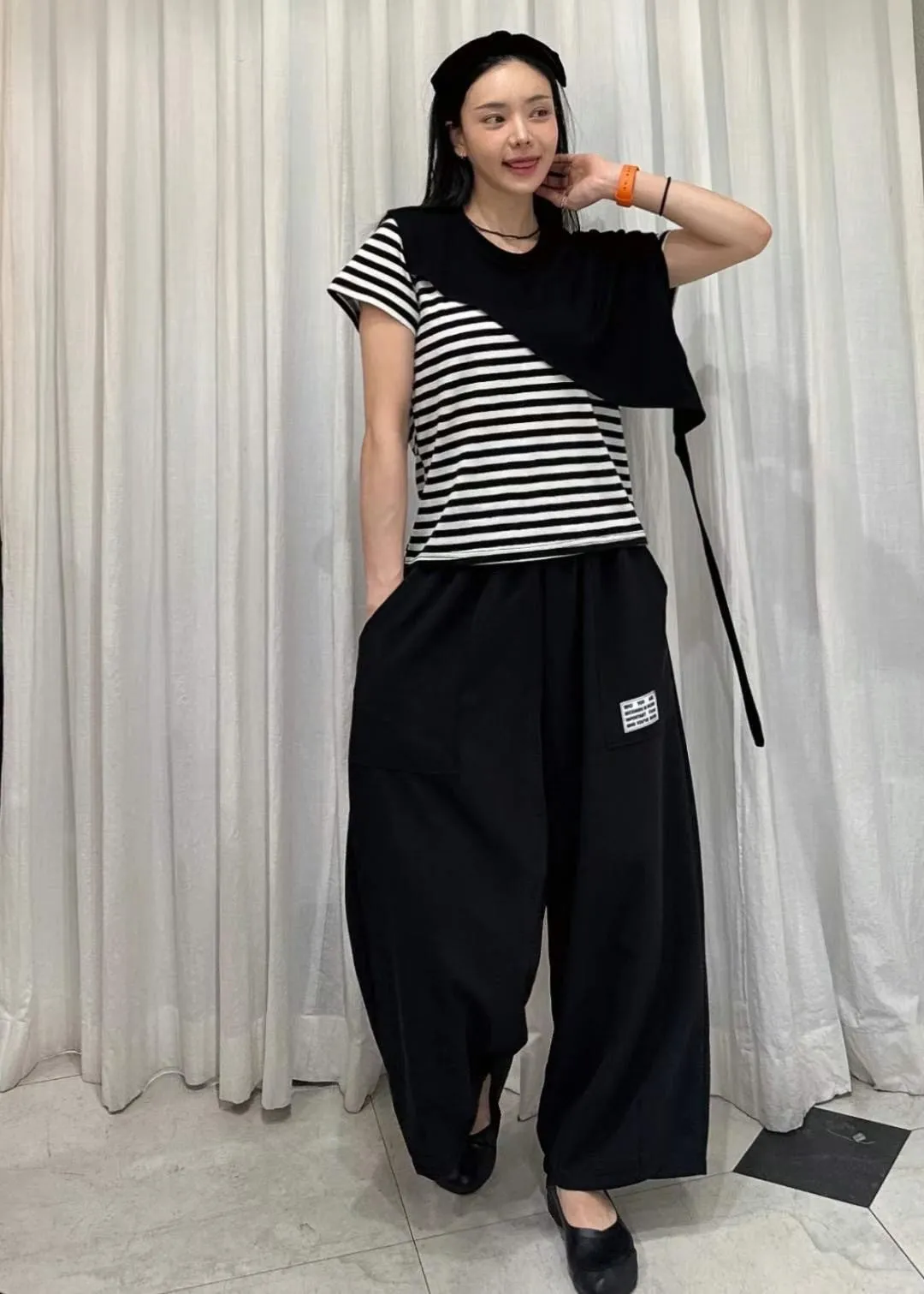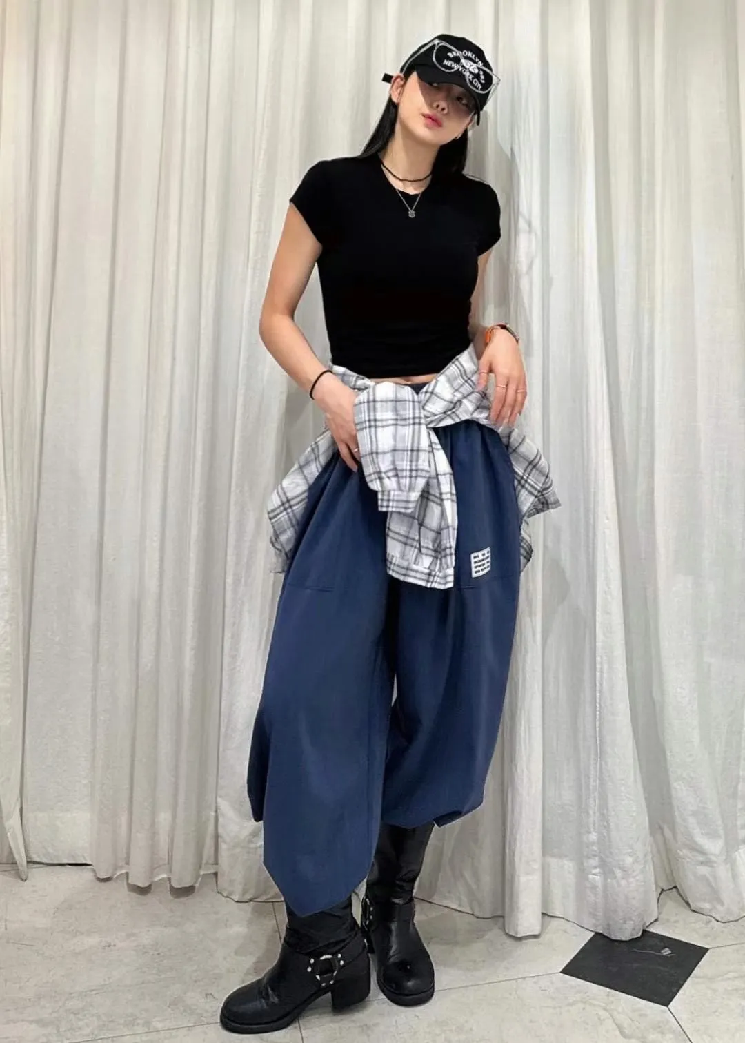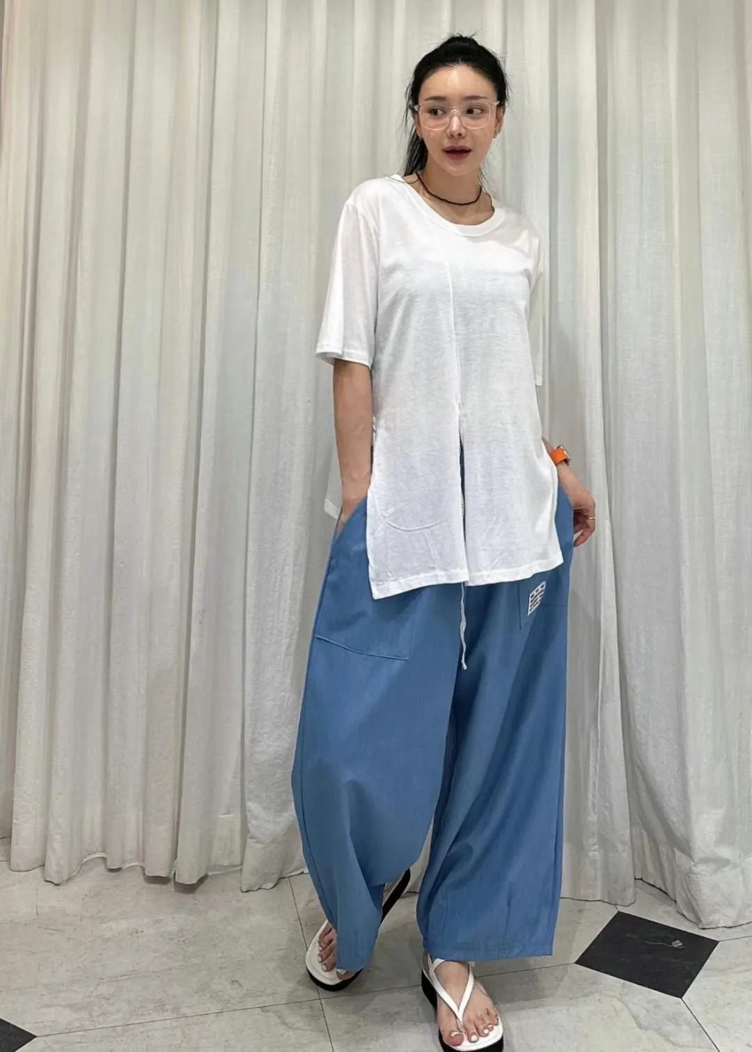 聚酯+縲縈+彈力 全腰鬆緊 英文小布標 口袋大容量 不易皺面料