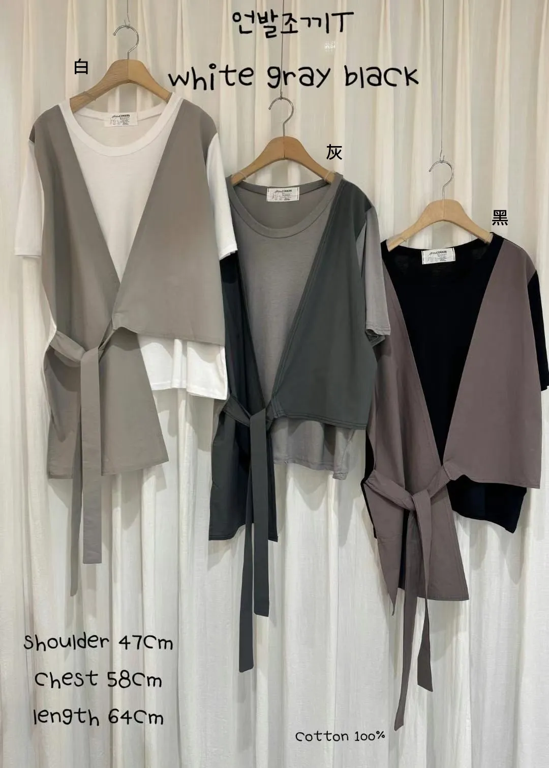 棉 透氣舒適 可綁腰帶 也拆開變成背心 假兩件 輕盈不厚重