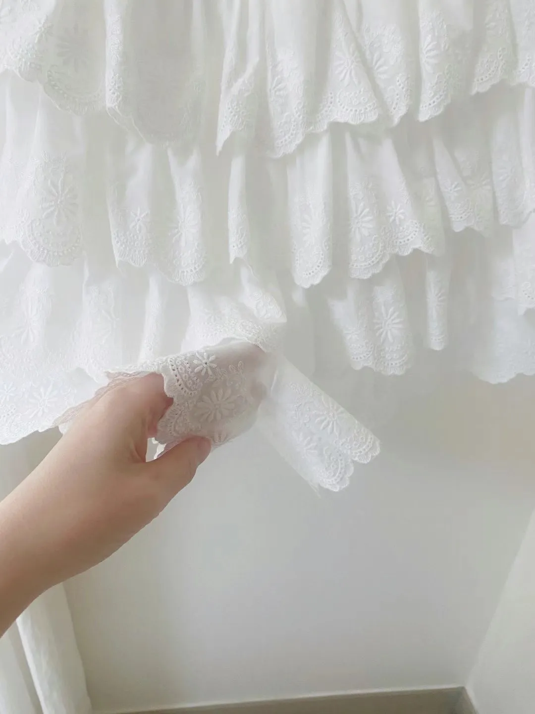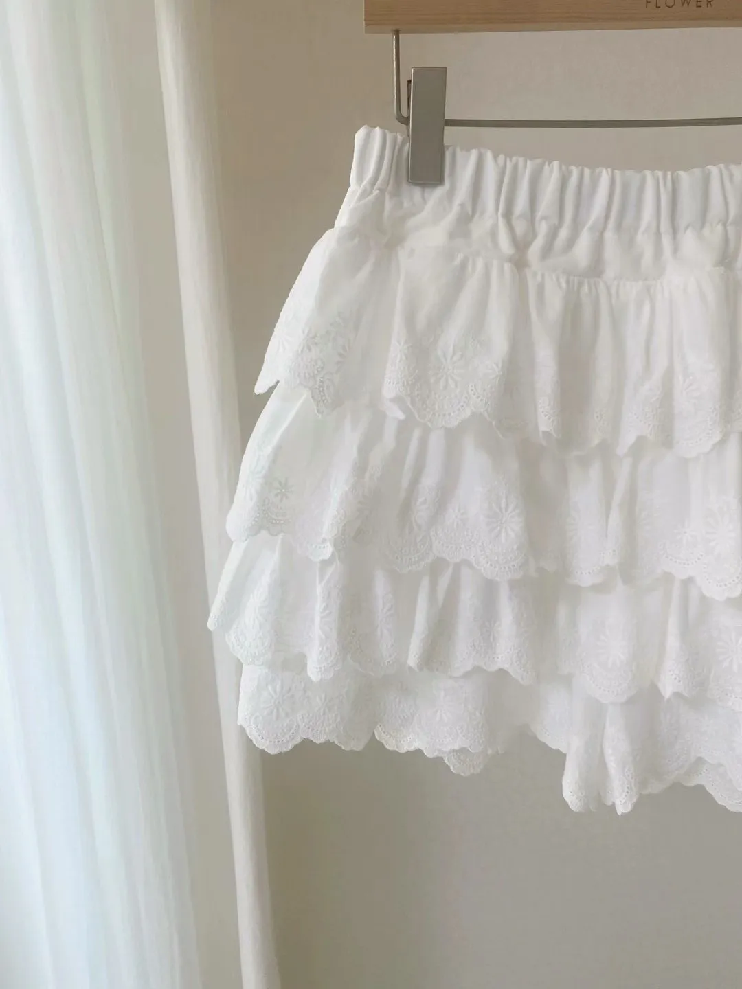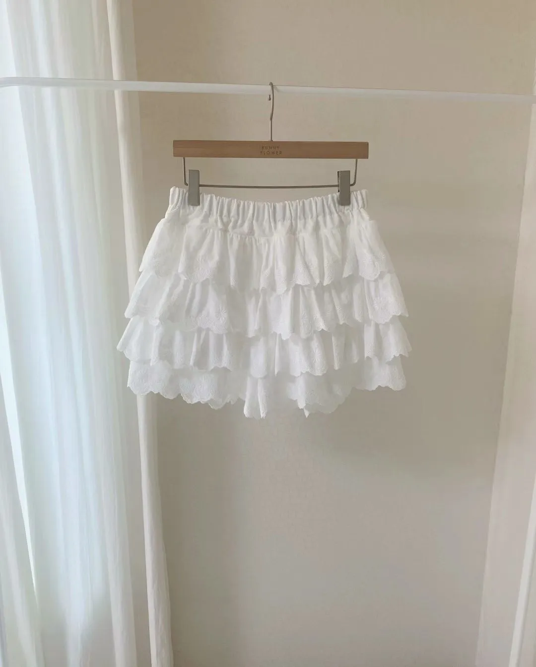 棉 刺繡蕾絲 花朵滾邊 清爽視覺 全腰鬆緊 無口袋 是短褲