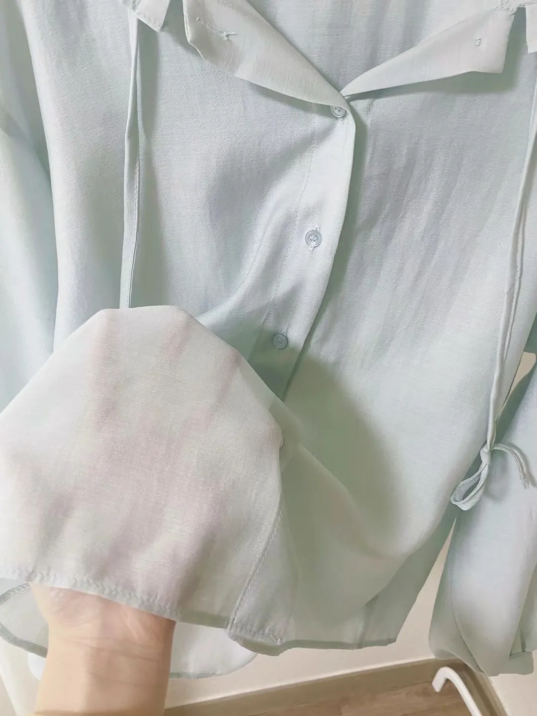 天絲+縲縈 連帽設計 細緻珠光面料 薄款 夏天舒適 袖口有釦