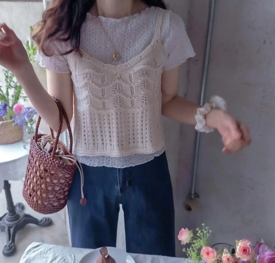 棉 細緻簍空編織 肩帶不可調 度假感滿分