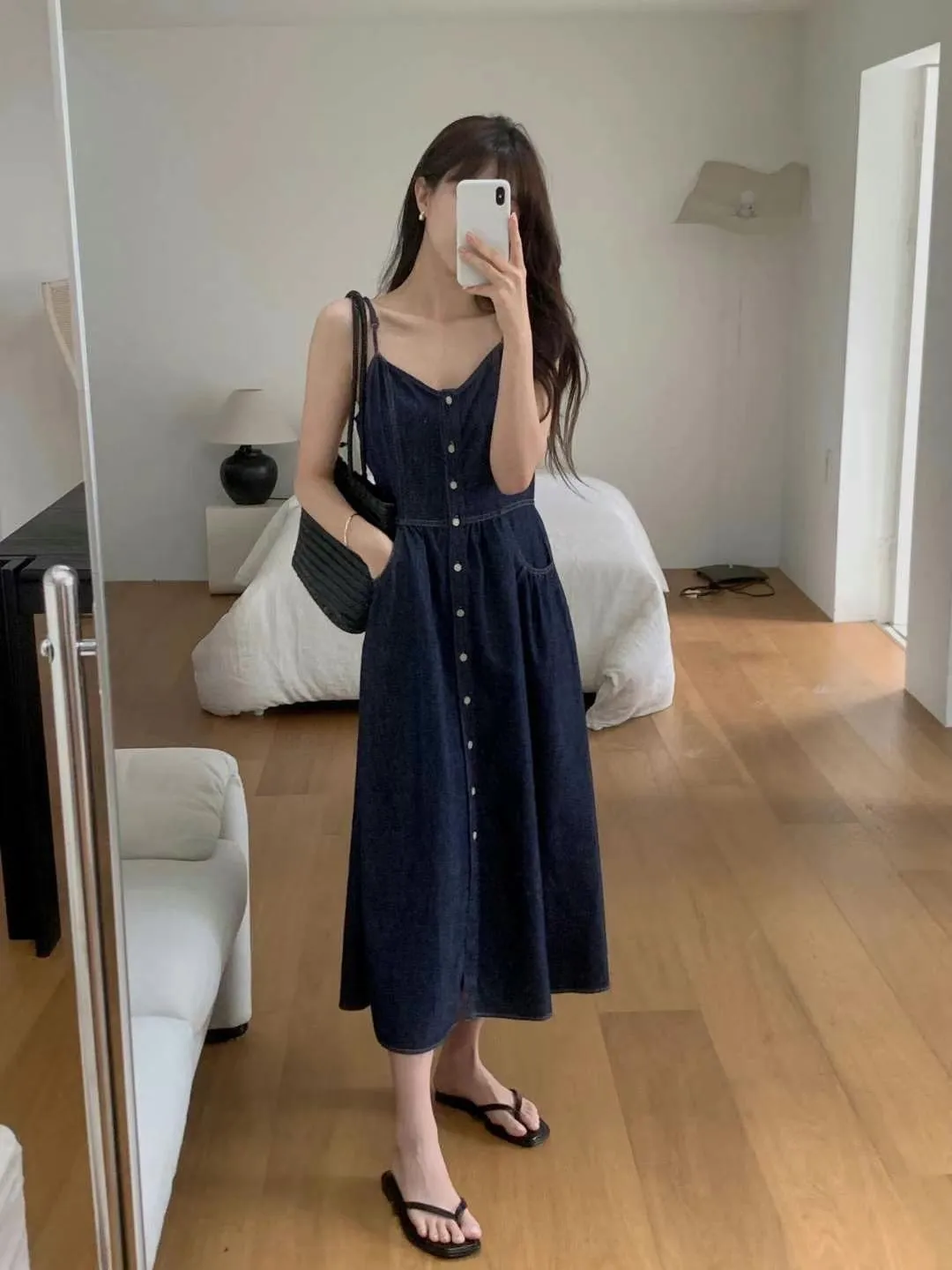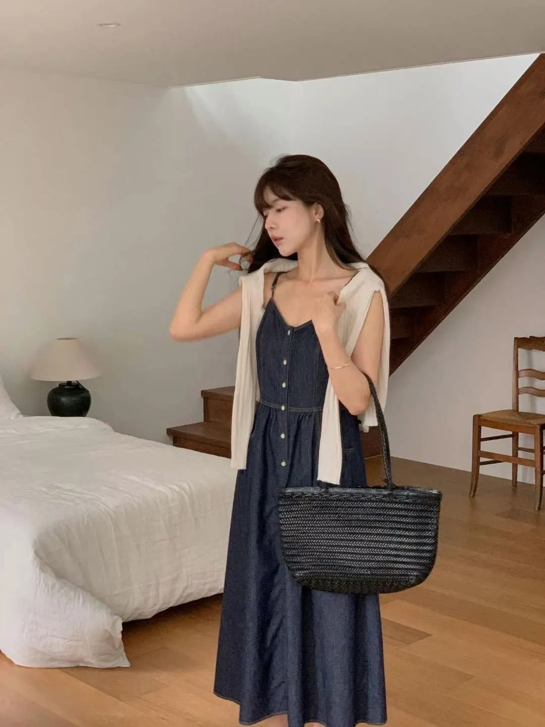 棉 透氣舒適 柔軟薄款牛仔 肩帶可調 厚度跟Tshirt一樣薄 有口袋