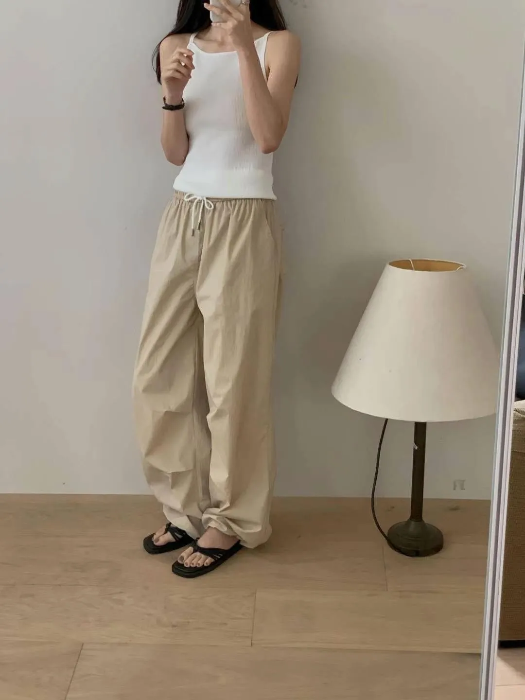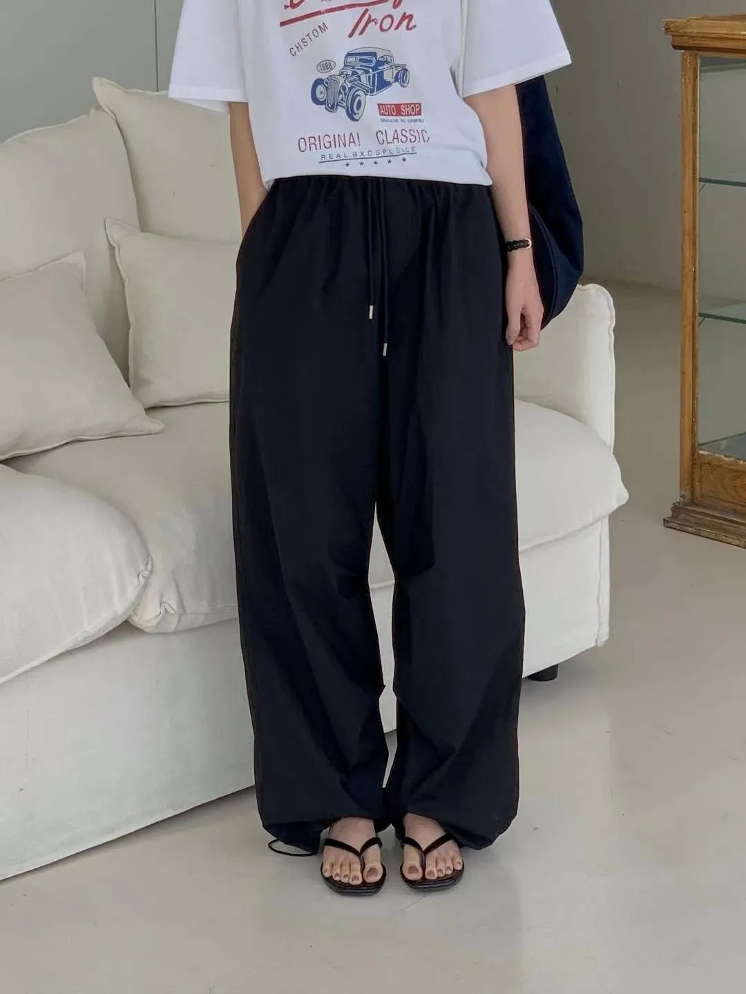 尼龍 涼感舒適 全腰鬆緊有抽繩 有口袋 褲管抽繩有口袋