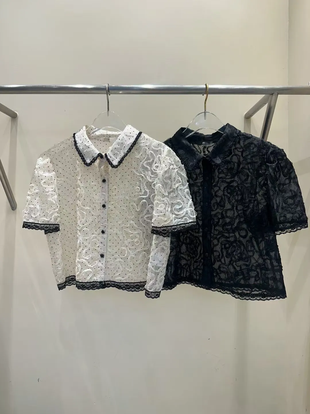 聚酯+蕾絲 立體鋼琴烤漆玫瑰釦 薄款透光 夏天合適