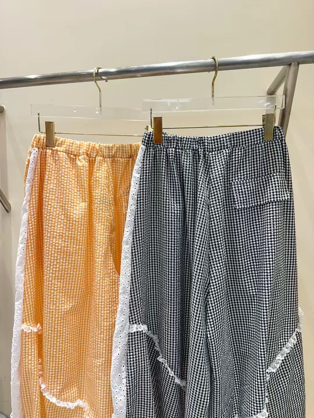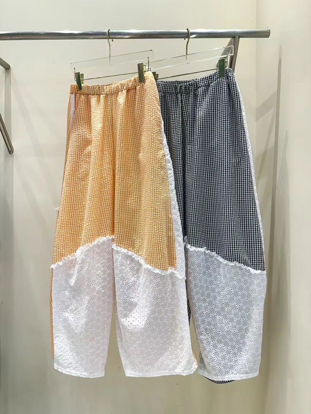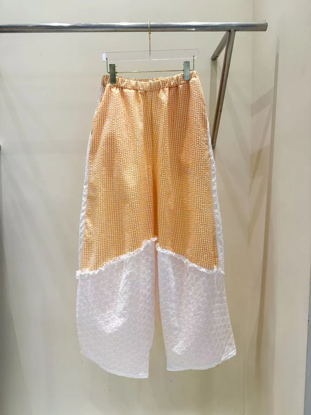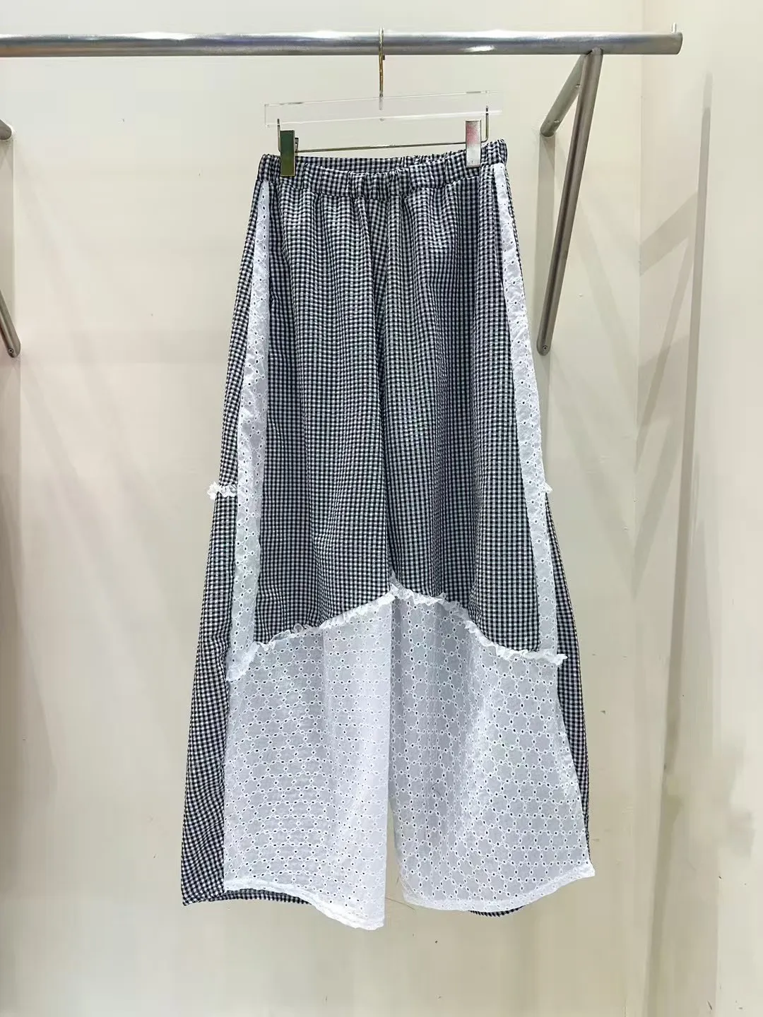 棉+聚酯,燒花蕾絲 拼接雙色 有口袋 全腰鬆緊