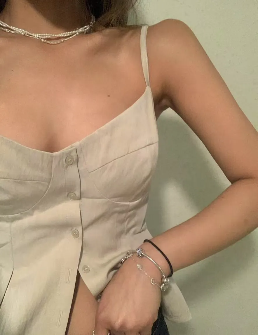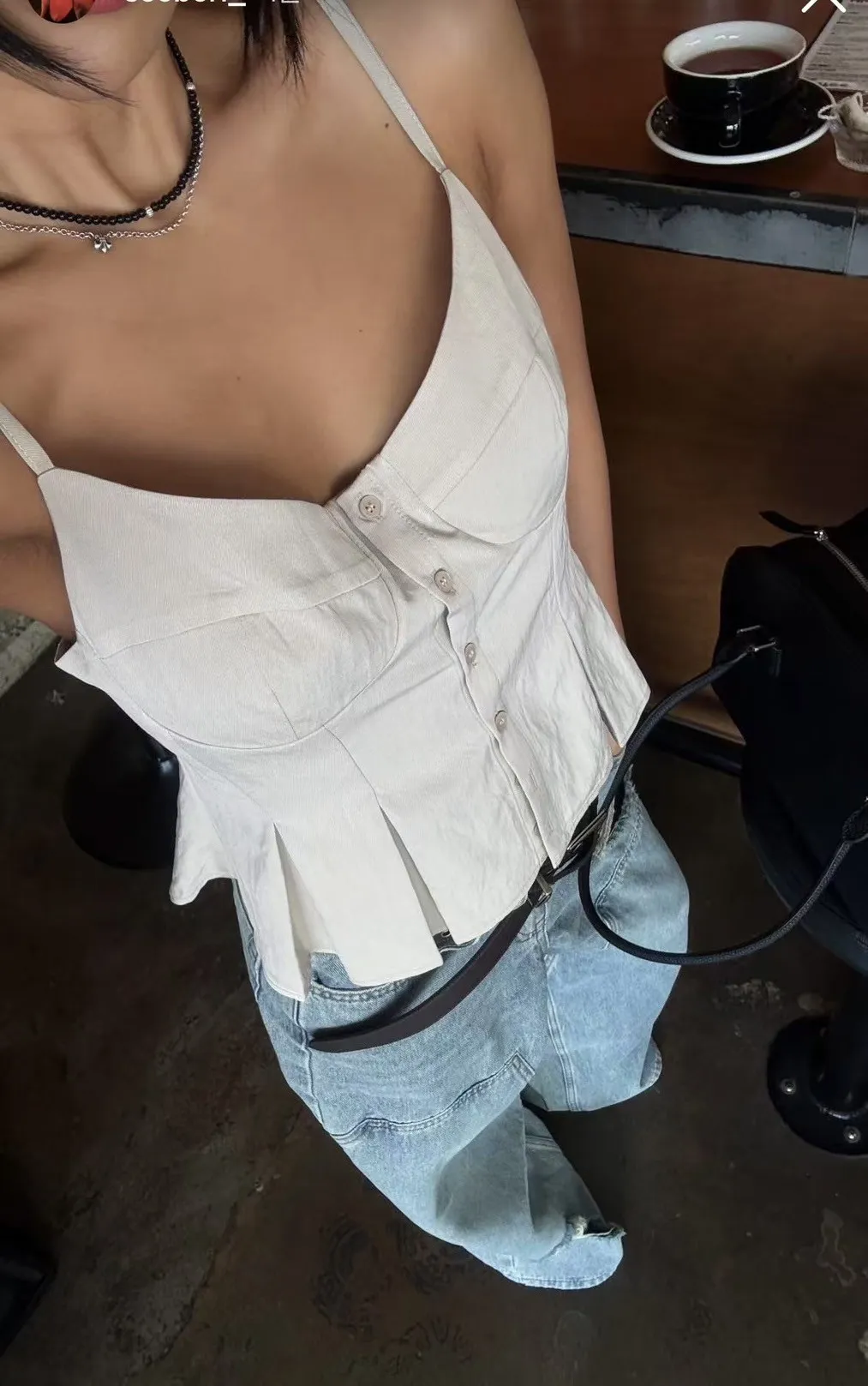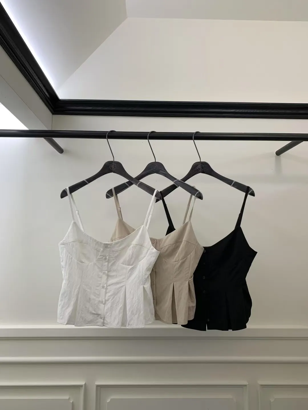 GM296細肩帶寬百褶上衣 白 黑 奶茶 官網價$1120 線上價$1090