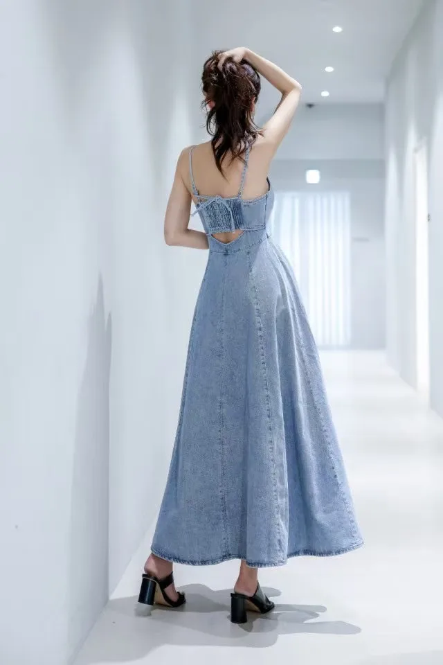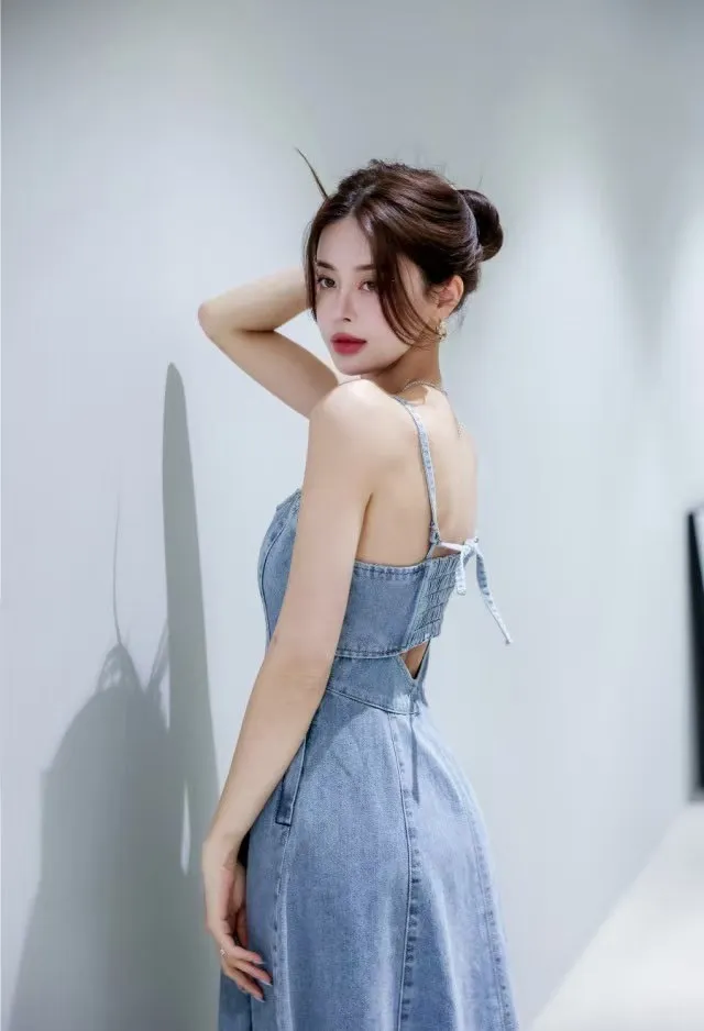 GM298美背簍空細腰女神洋裝 白 黑 牛仔藍 S M 官網價$1680 線上價$1650