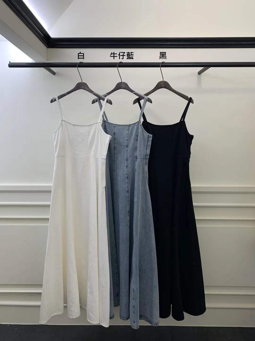 牛仔的面料會比較厚一點點,白色跟黑色的面料薄款一些