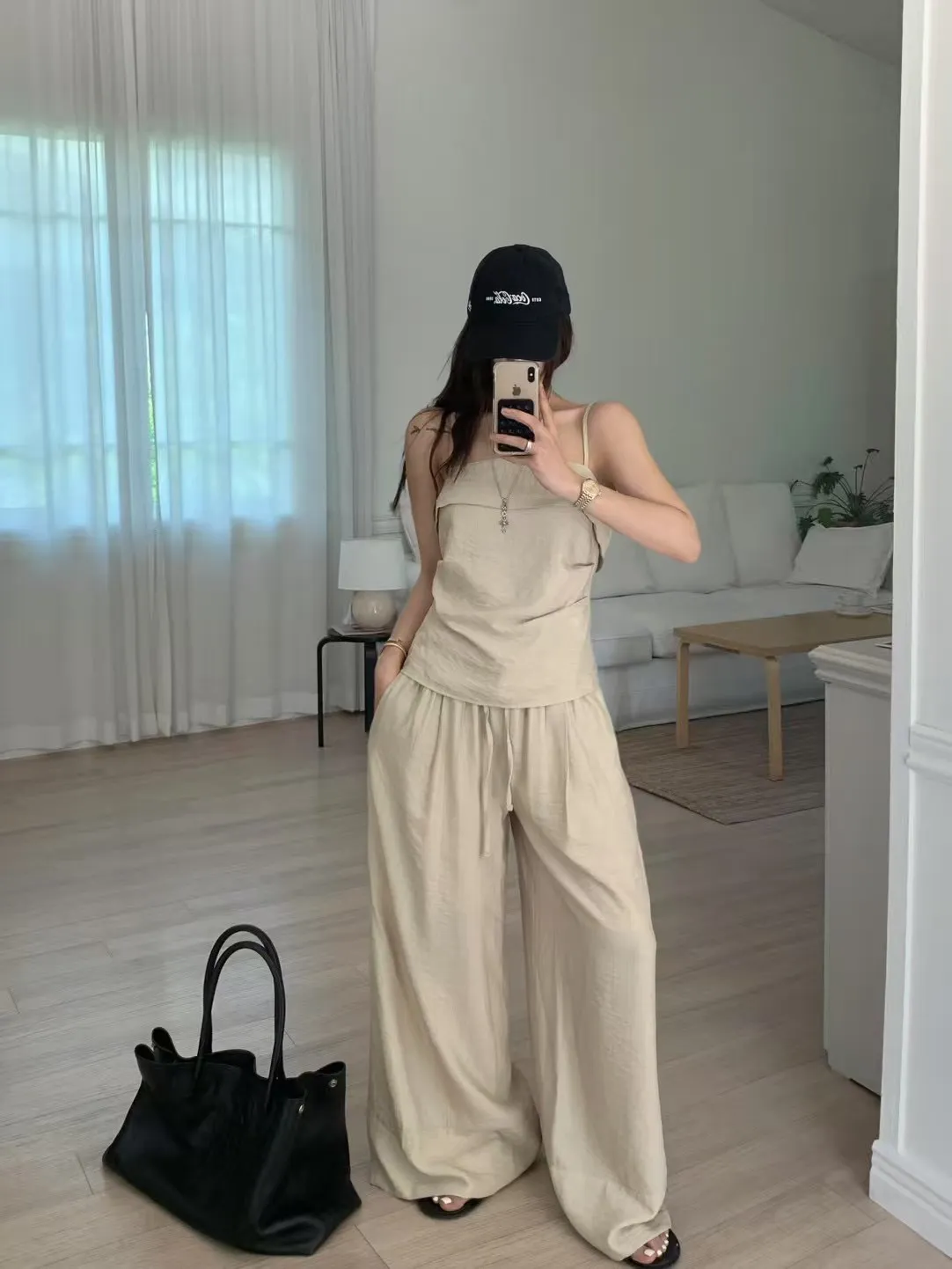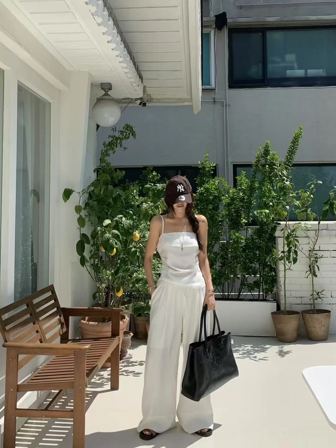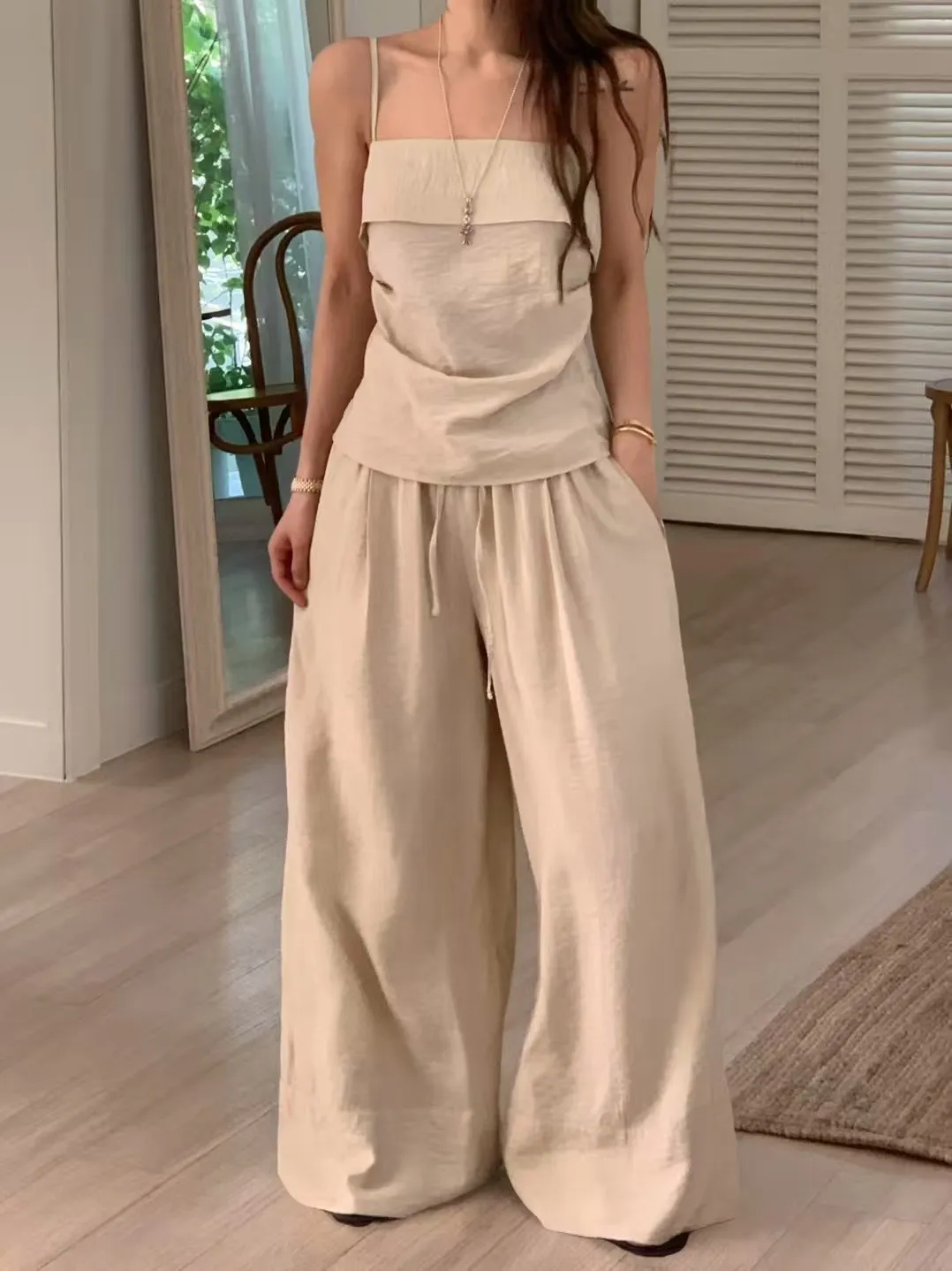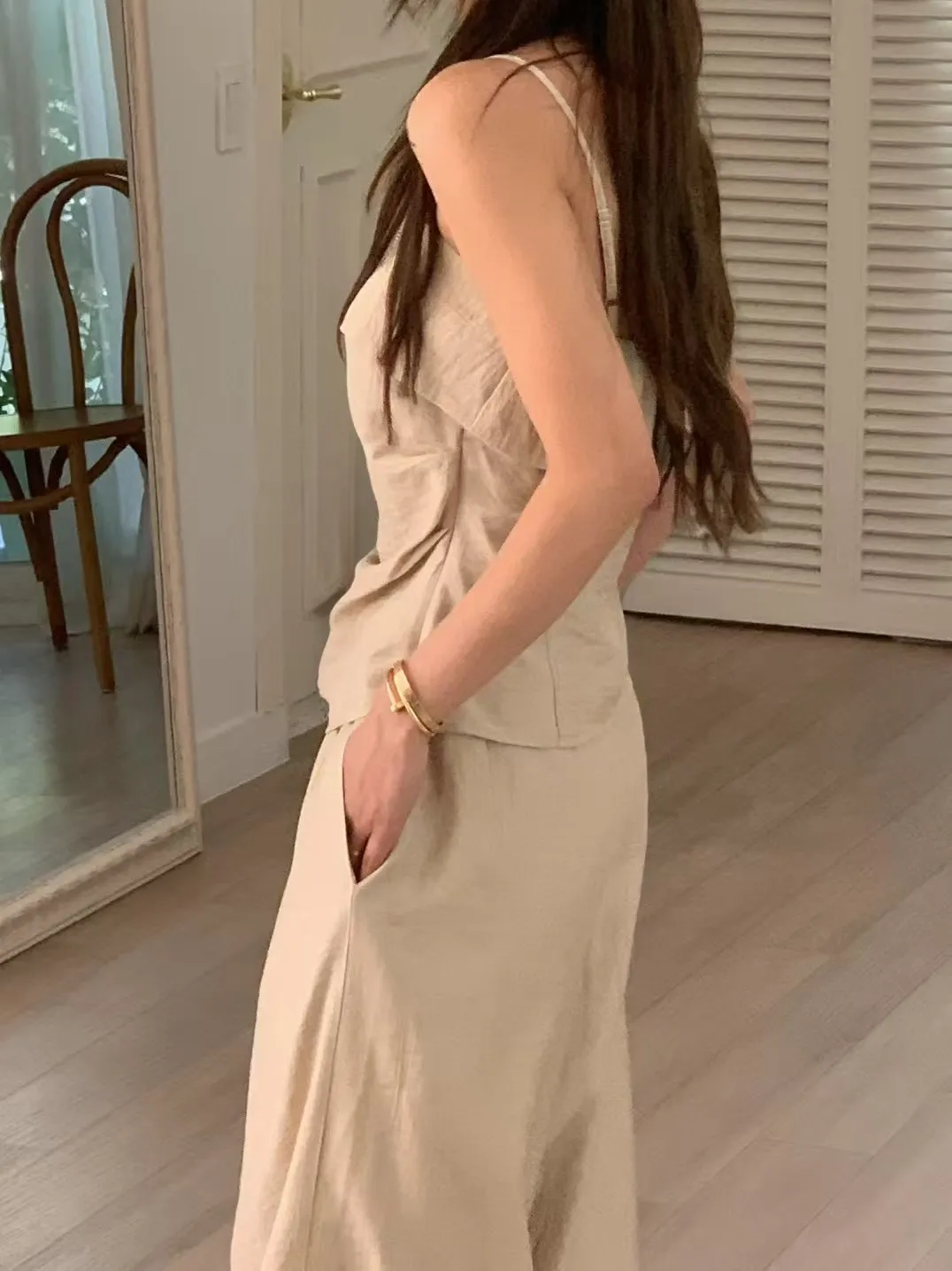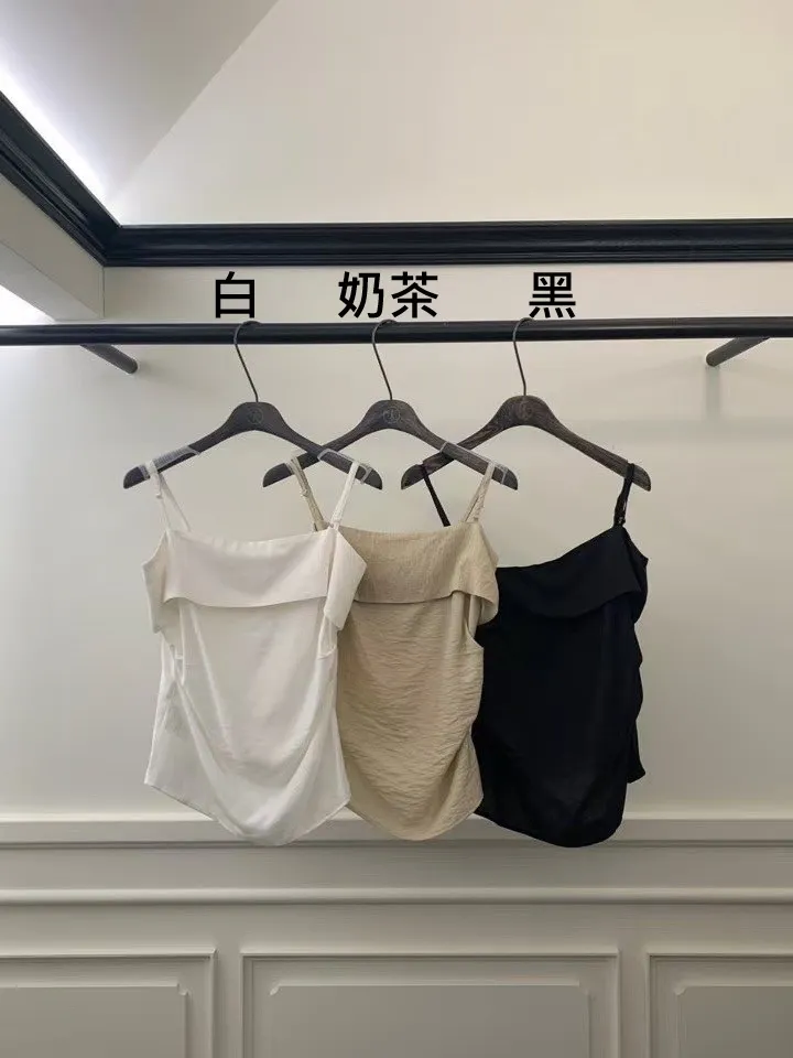 GM304套裝的細肩帶反摺設計感上衣 白 黑 奶茶 官網價$899 線上價$869