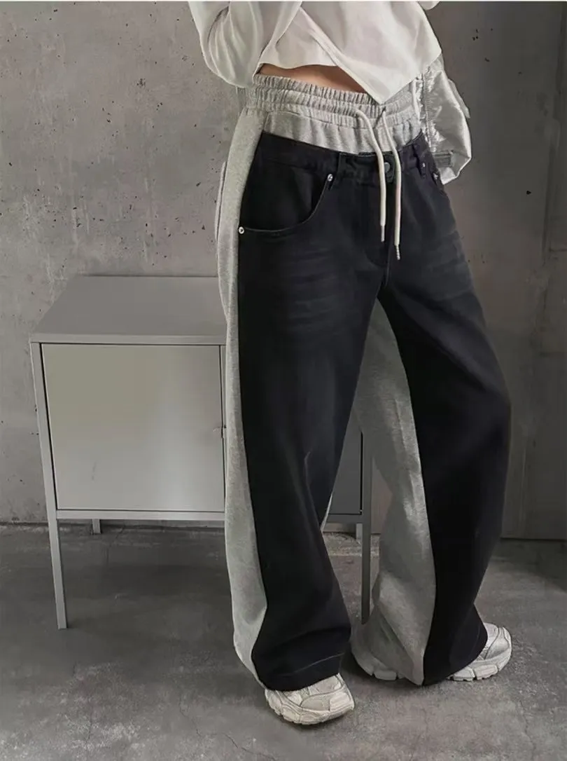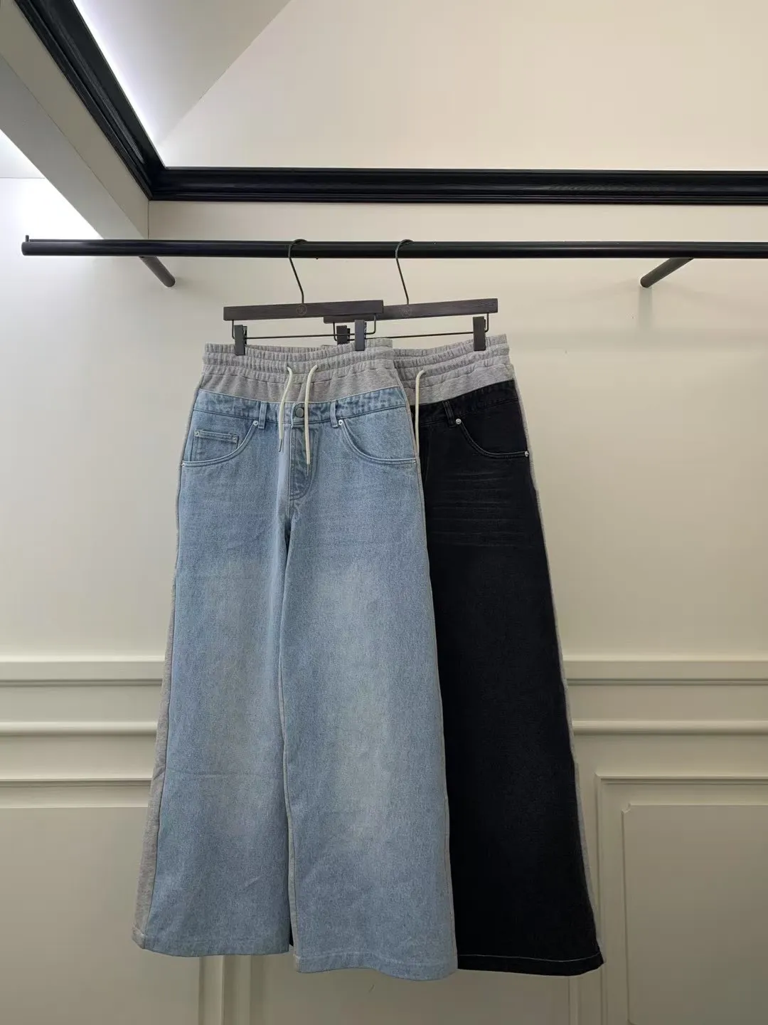 GM307拼接雙褲頭好舒服牛仔長褲 藍 黑 官網價$1290 線上價$1260
