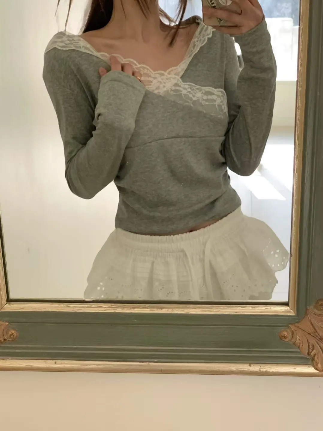 GM309超薄交叉蕾絲連帽上衣 白 灰 黑官網價$990 線上價$960
