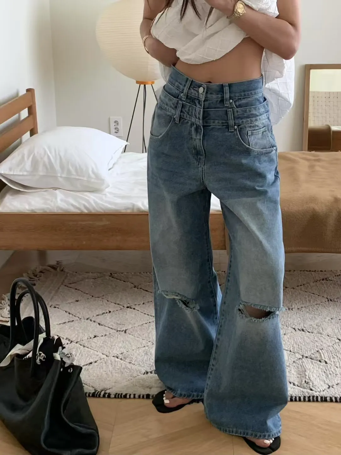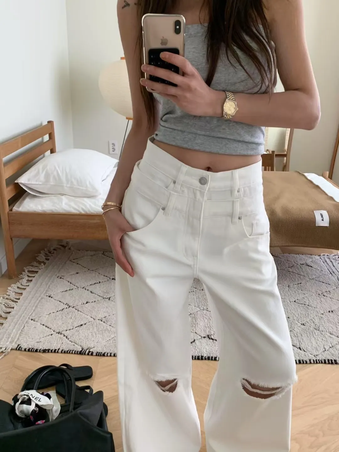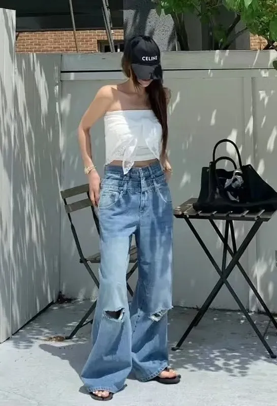 GM313割破設計牛仔長褲 白 藍 S M L 官網價$1290 線上價$1260