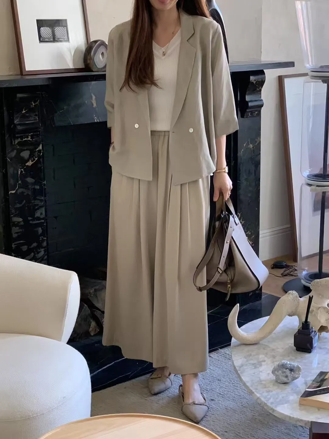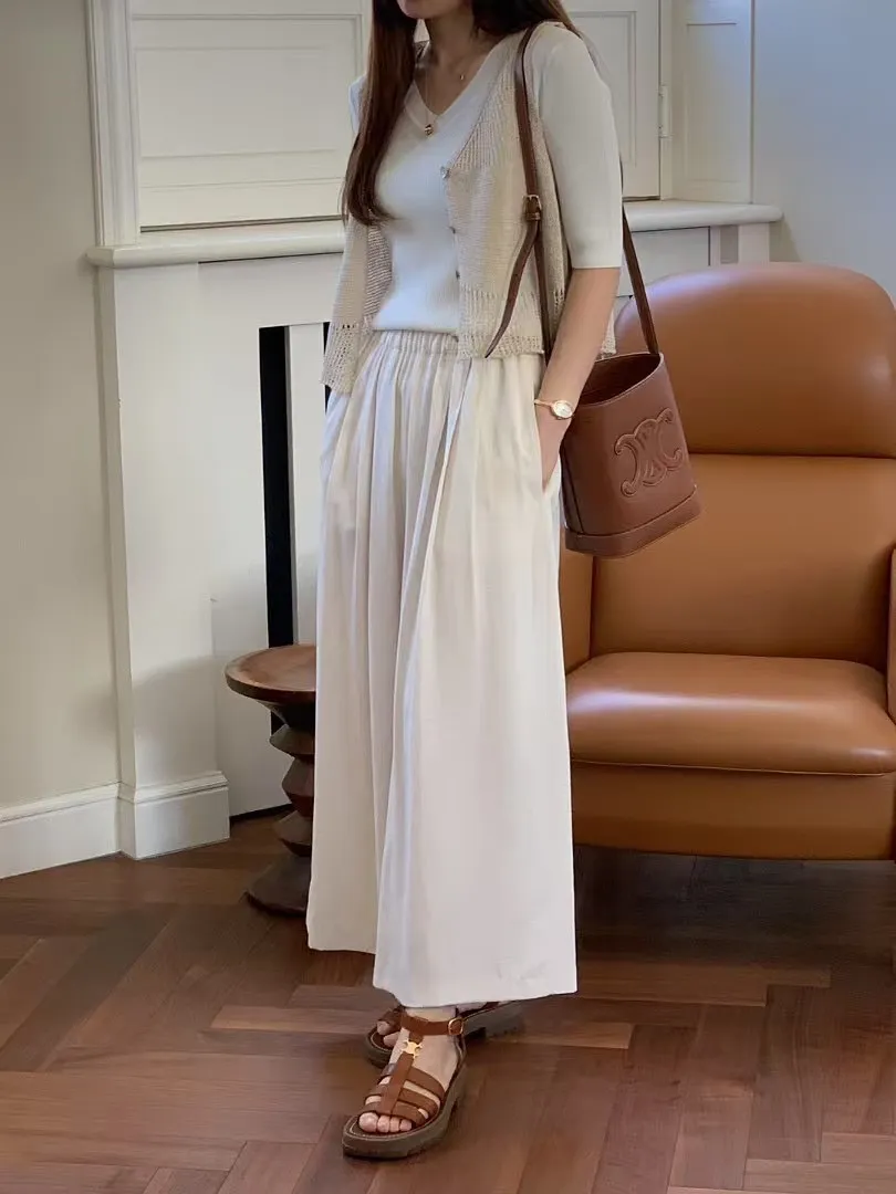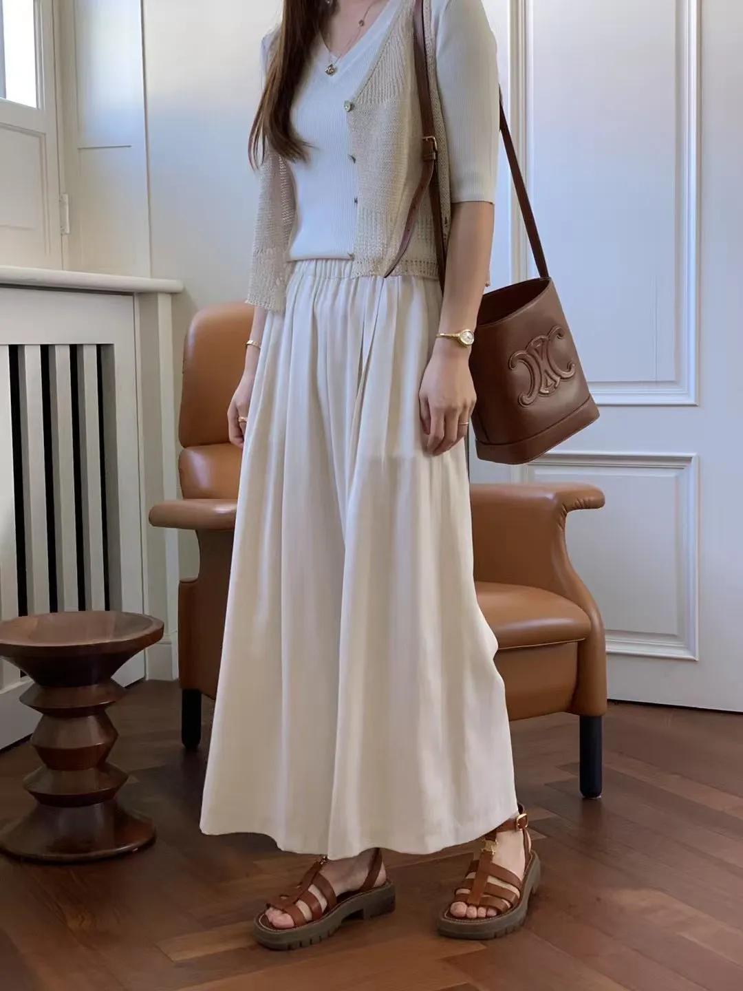 人造絲+亞麻+聚酯 薄款涼感 有口袋 全腰鬆緊 夏天舒適