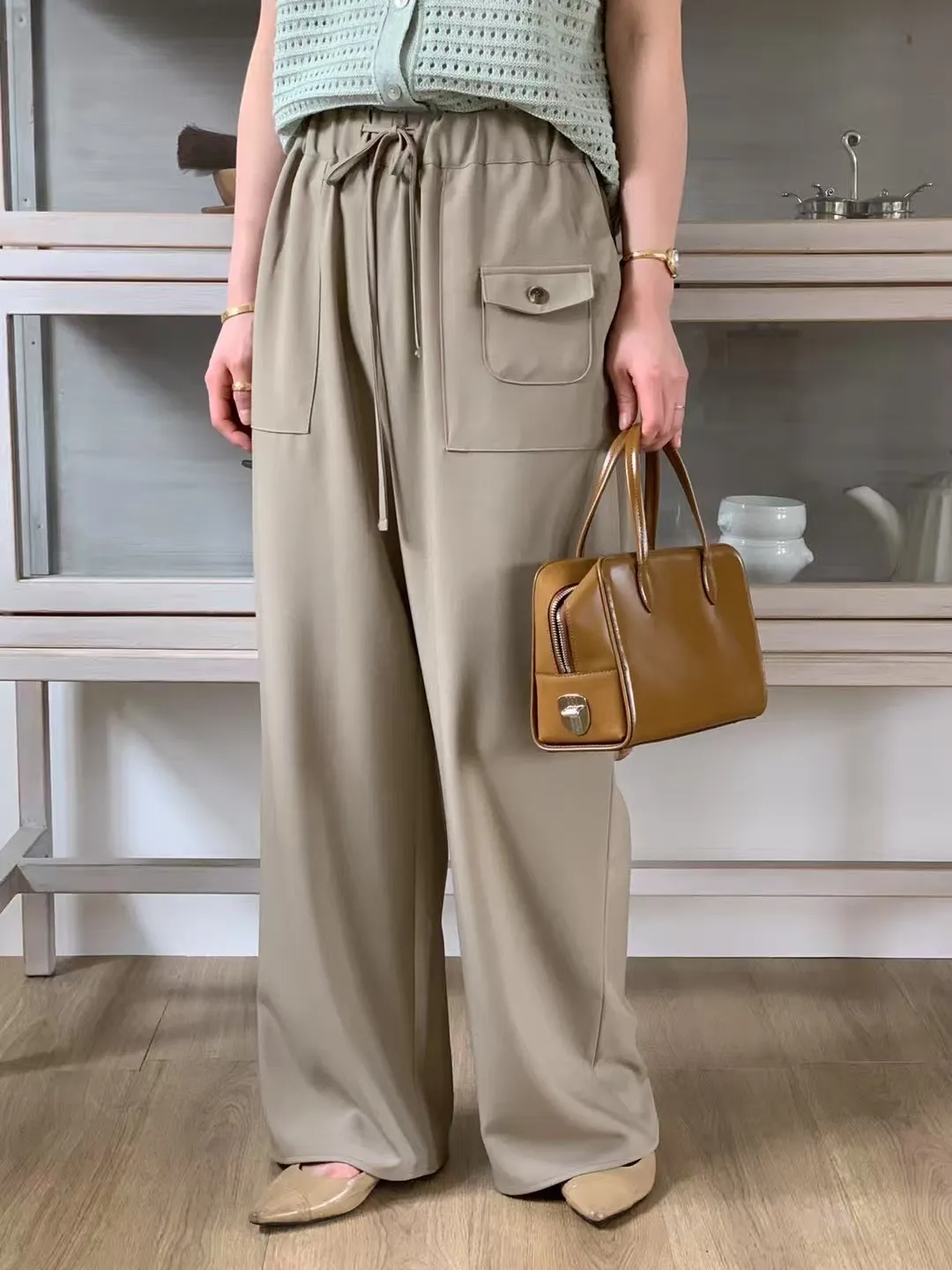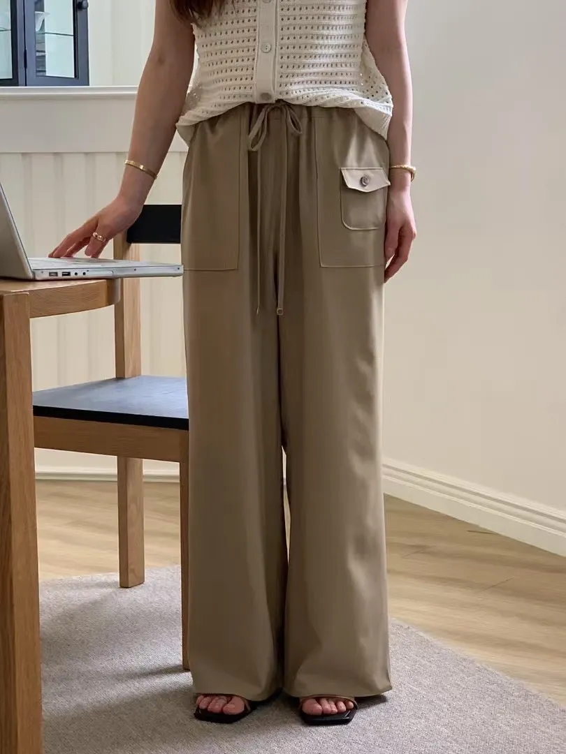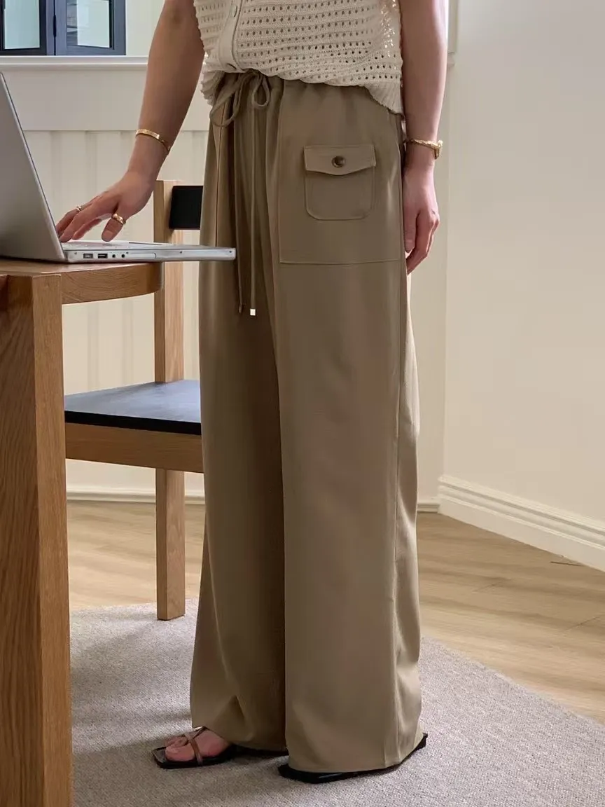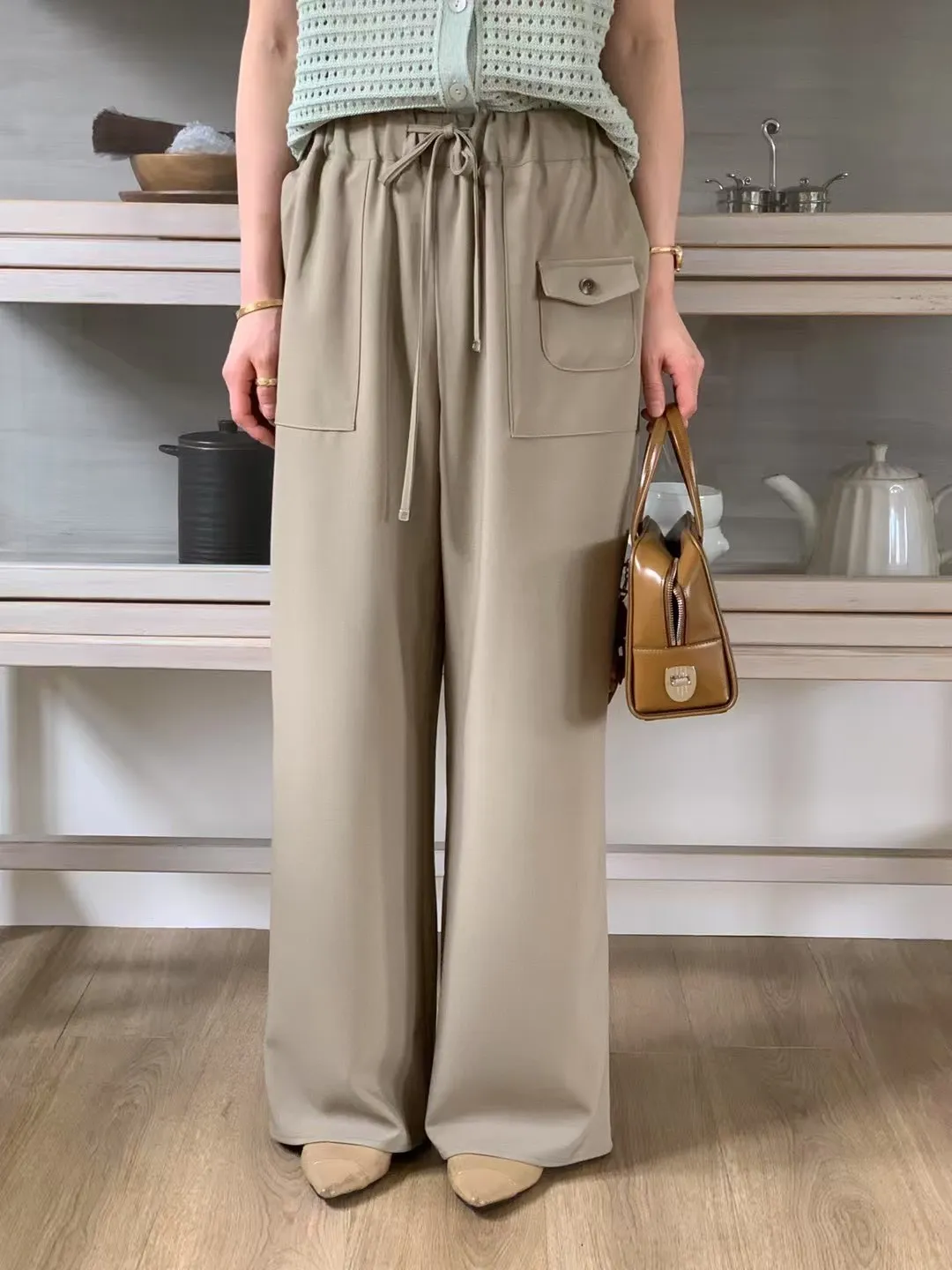 聚酯+彈力 全腰鬆緊有抽繩 側腿前小口袋 有口袋