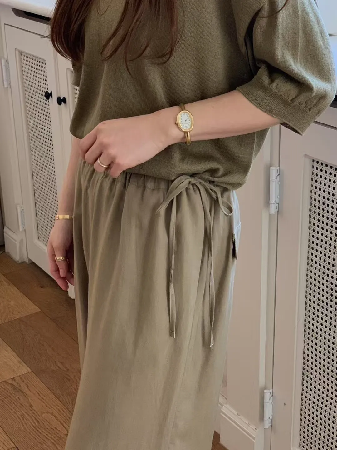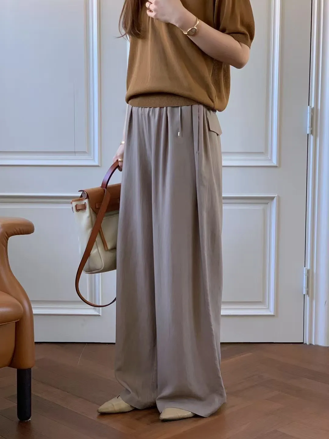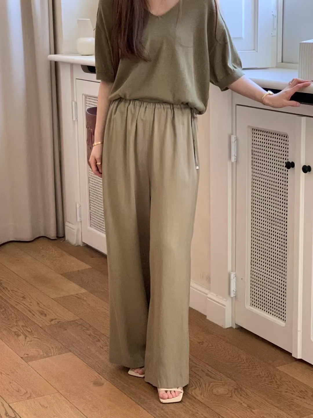 天絲80%+亞麻 直筒順身 褲檔舒適 腰有抽繩 有口袋
