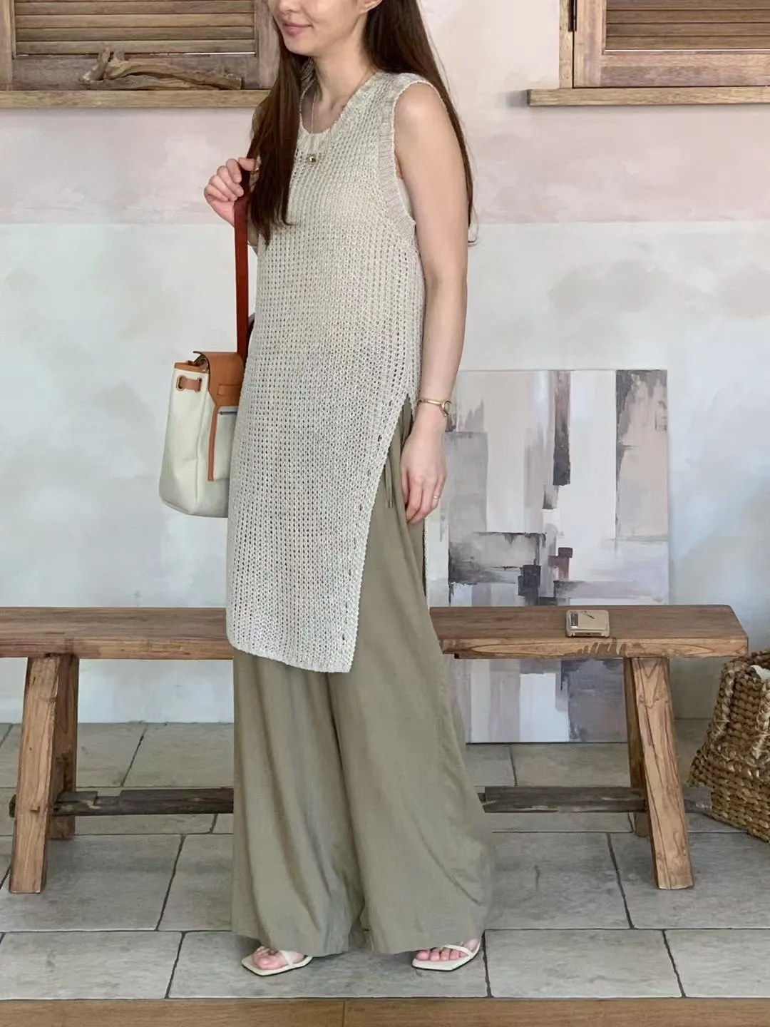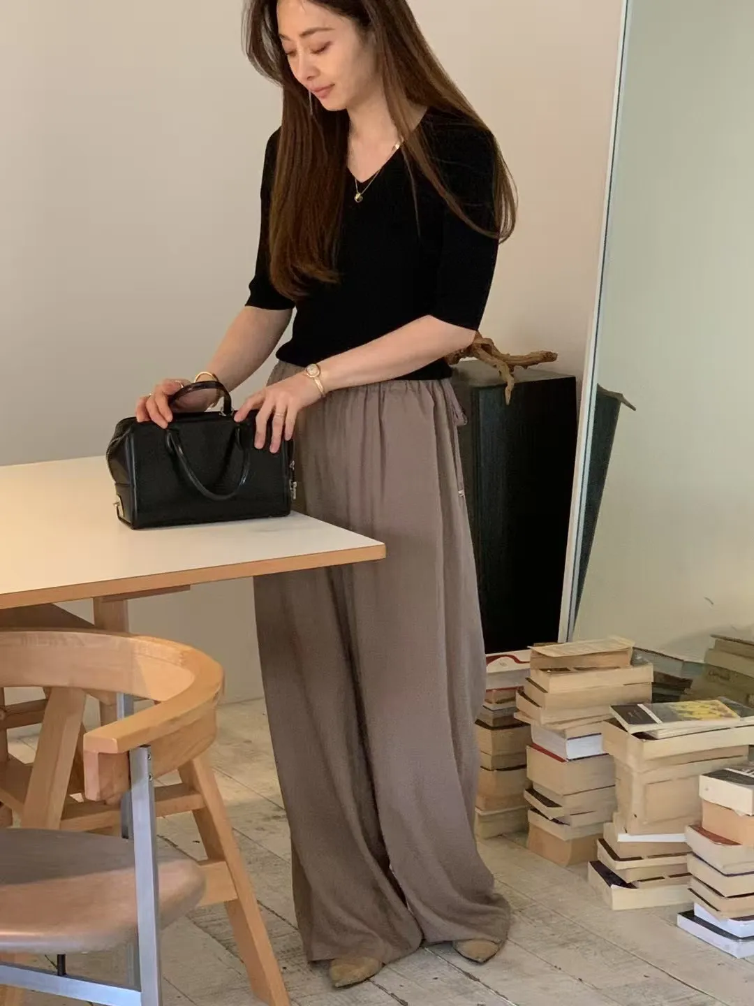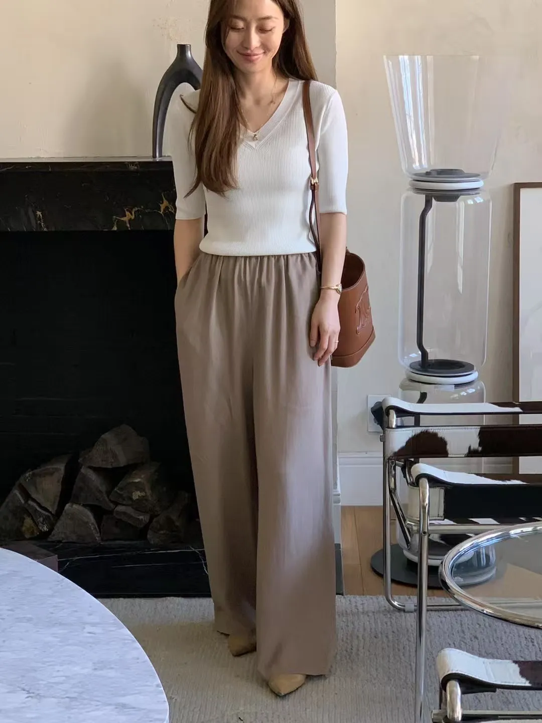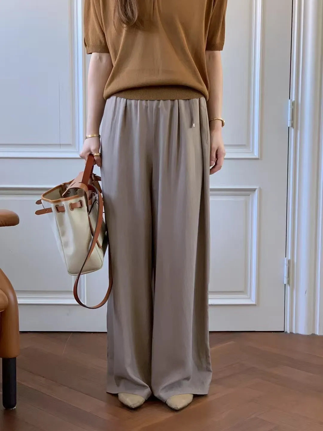 天絲80%+亞麻 直筒順身 褲檔舒適 腰有抽繩 有口袋