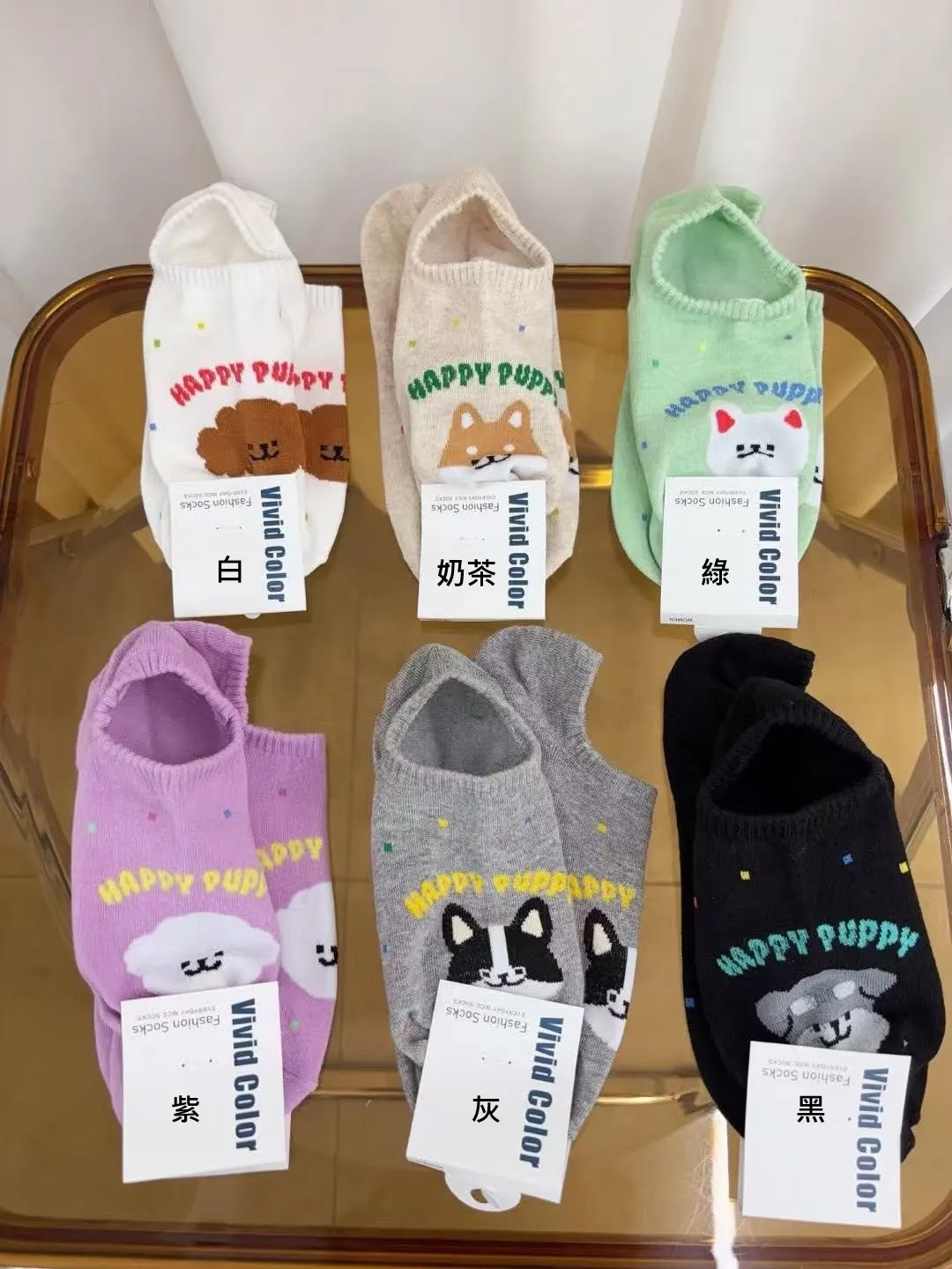 GM364可愛繽紛快樂狗狗襪 白 灰 黑 紫 綠 奶茶 $39 包色$210