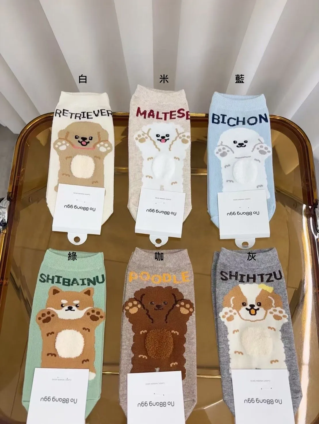 GM365撒嬌狗狗討摸襪 白 米 咖 綠 藍 灰 $39 包色$210