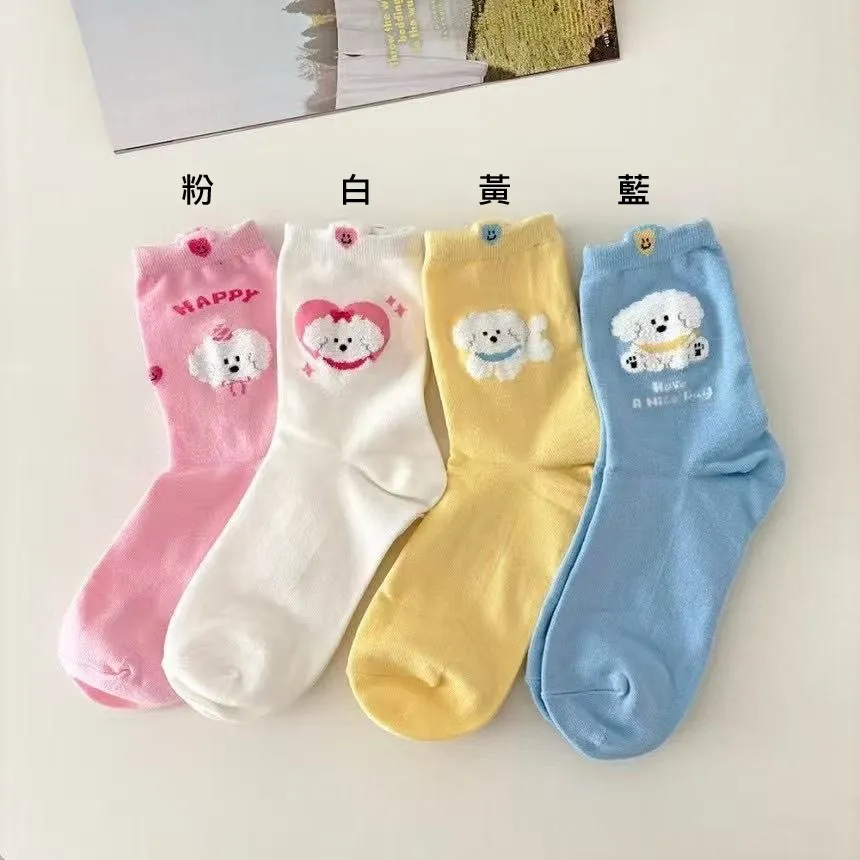 GM389小小愛心笑臉狗狗襪 白 藍 黃 粉 $49 包色$180