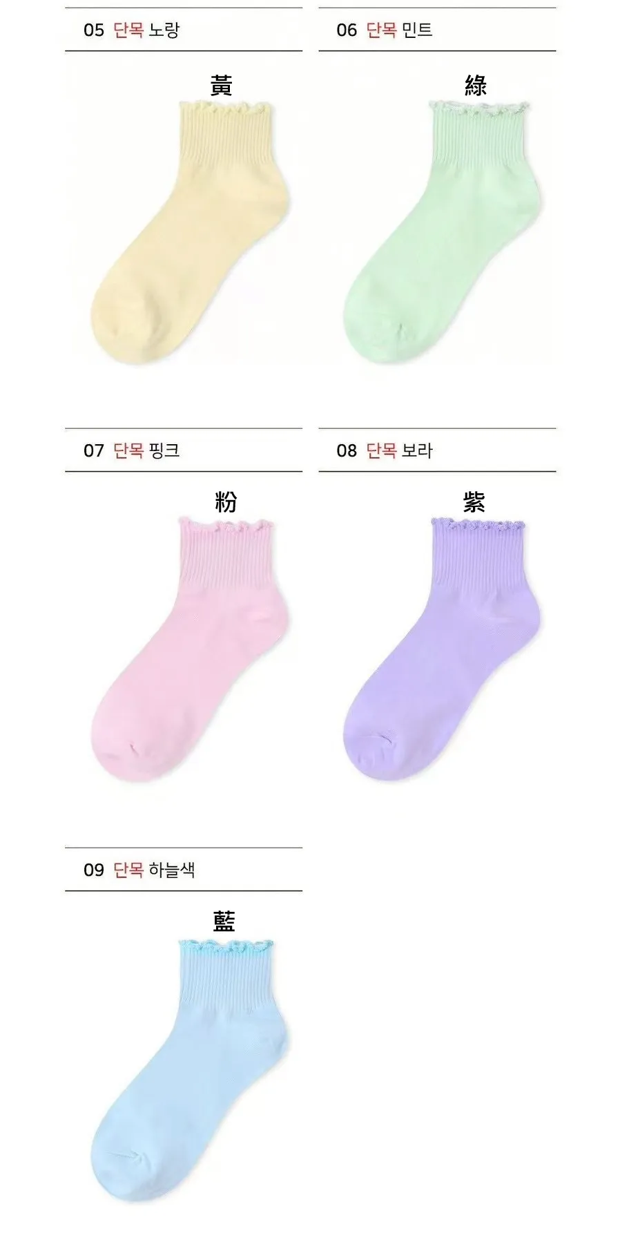 GM392許願款木耳滾邊襪 白 米 粉 黃 綠 藍 紫 灰 黑 $39 包色$315