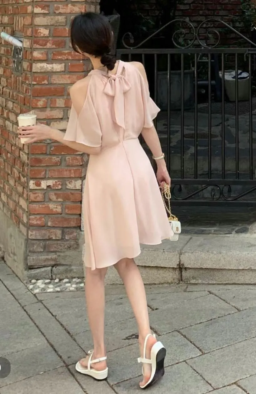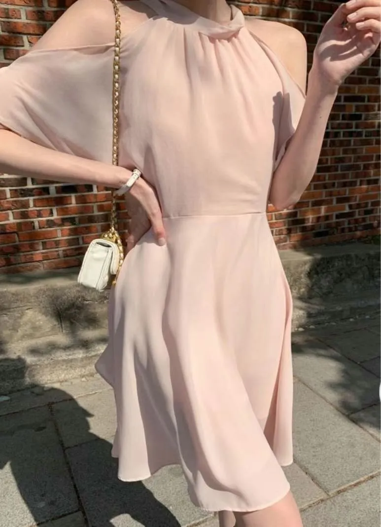 雪紡,拉鍊穿脫 美肩簍空 有內裡 飄逸面料