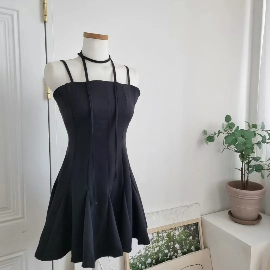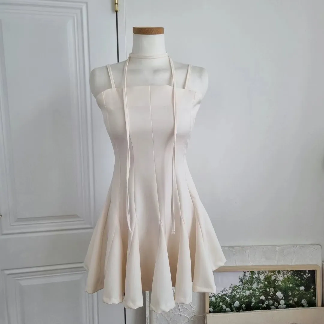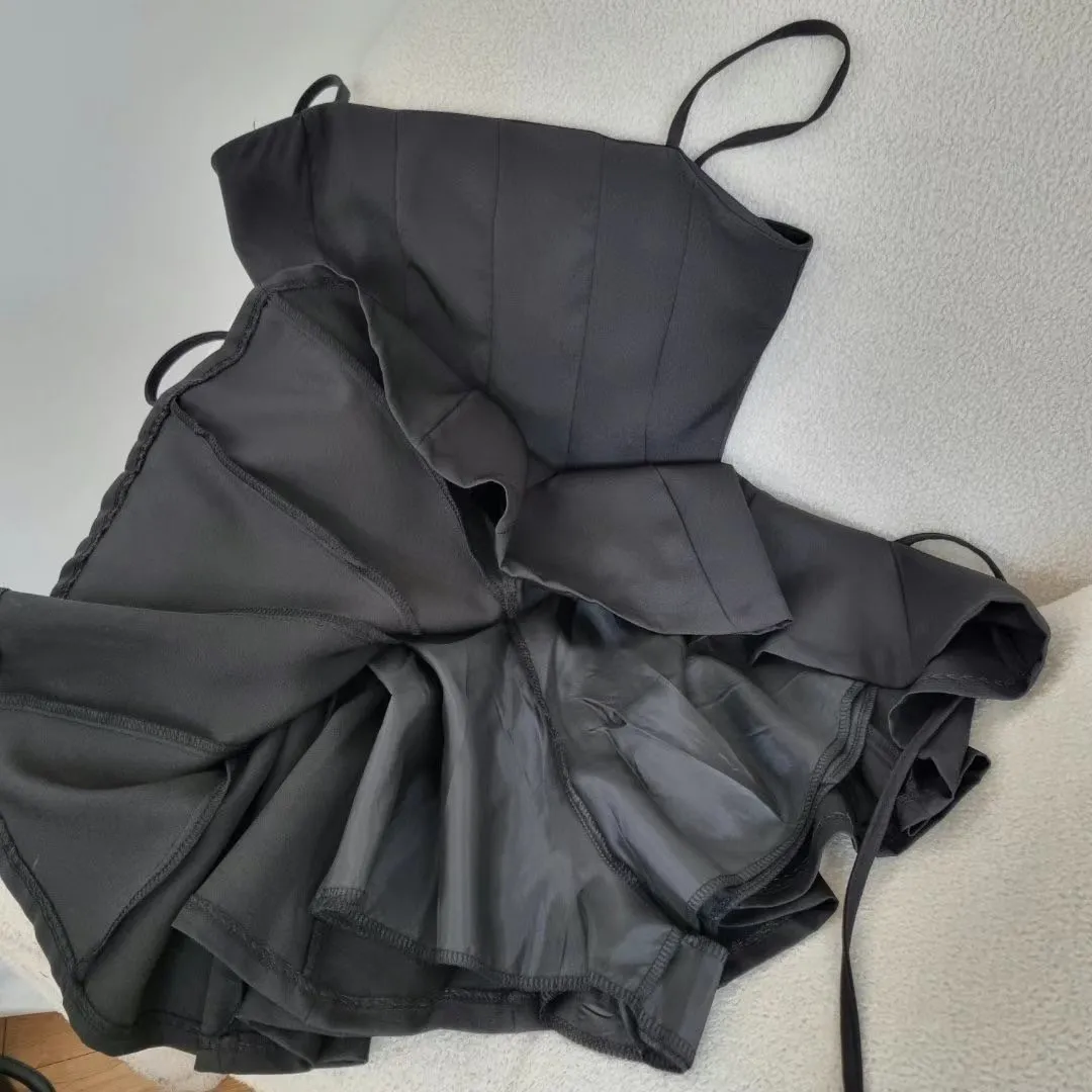 聚酯 百褶裙擺 附細綁帶 不可調肩帶 有內裡是褲裙 free size
