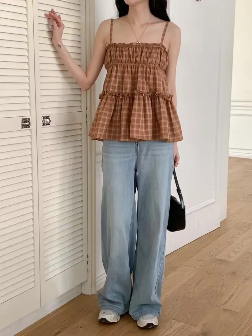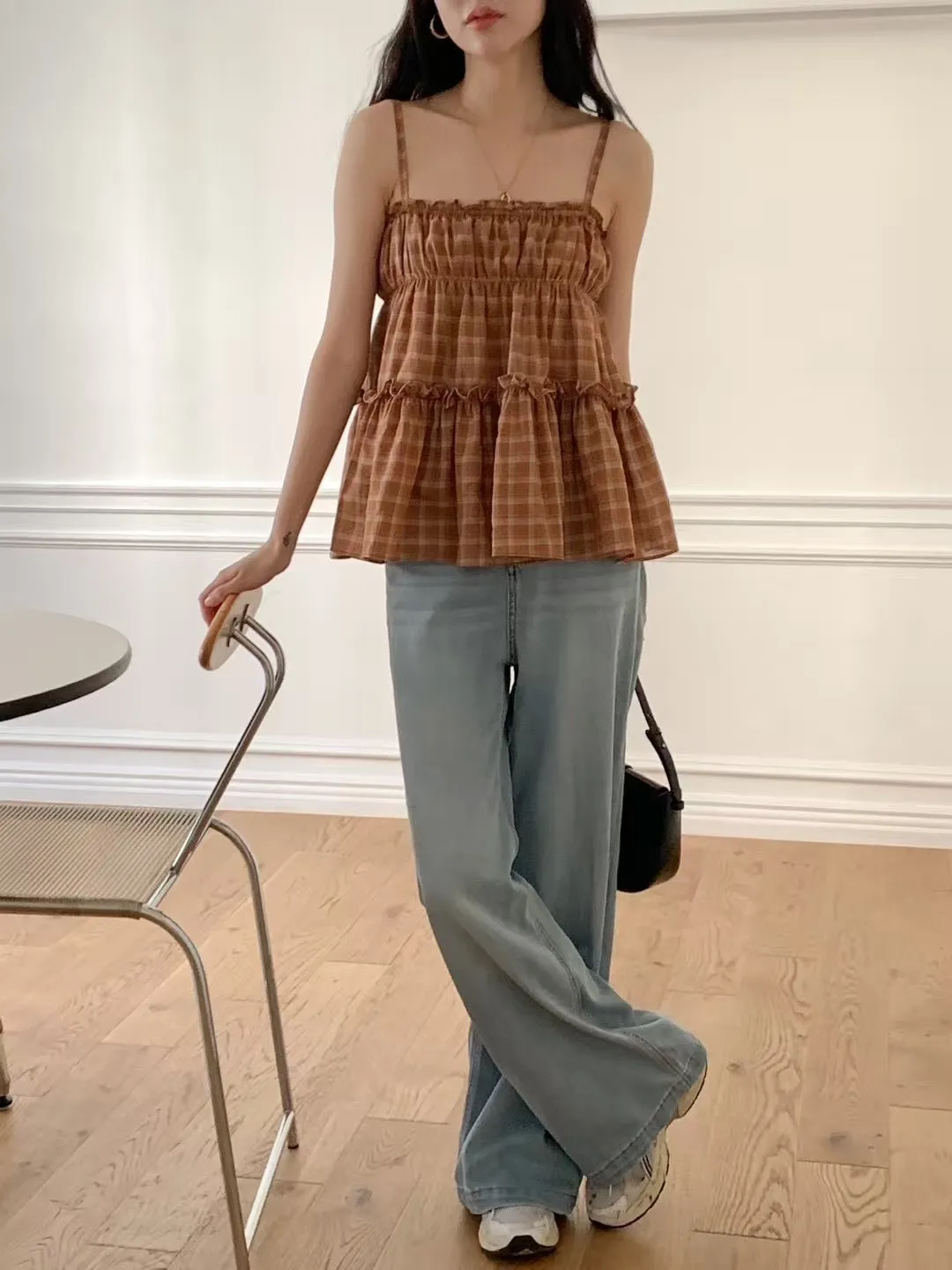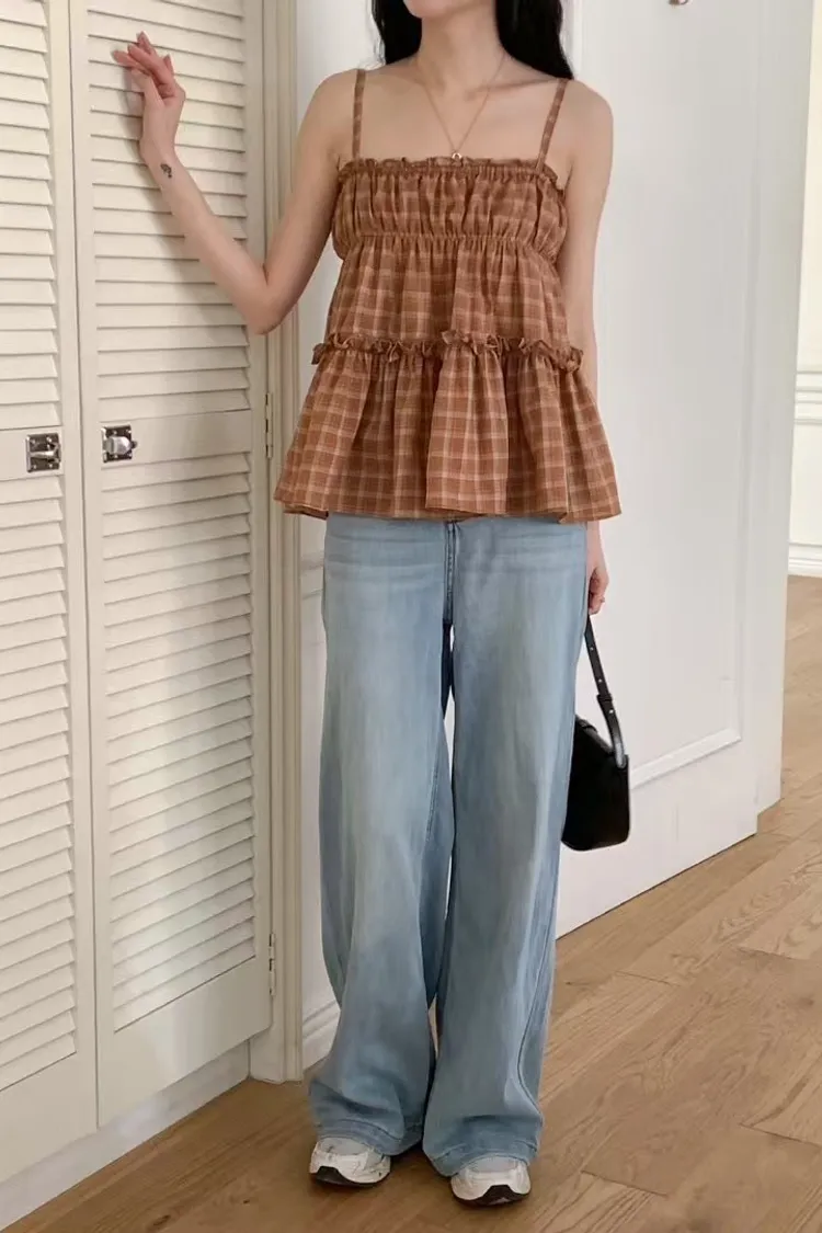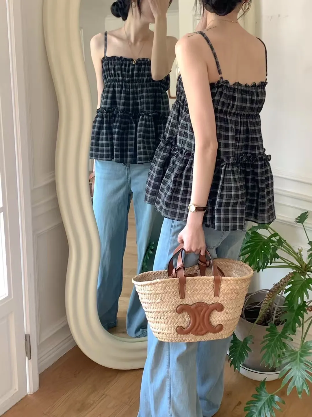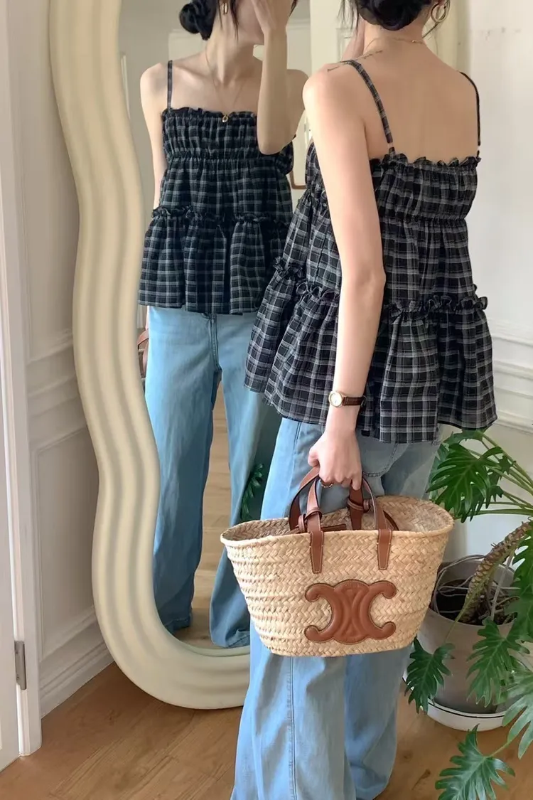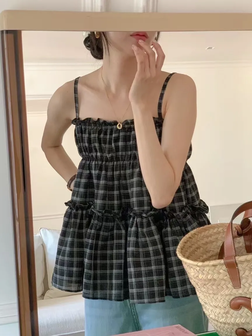 棉+彈力 透氣舒適 親膚荷葉滾邊 可調肩帶 胸前有彈性遮腹顯瘦 L號友善