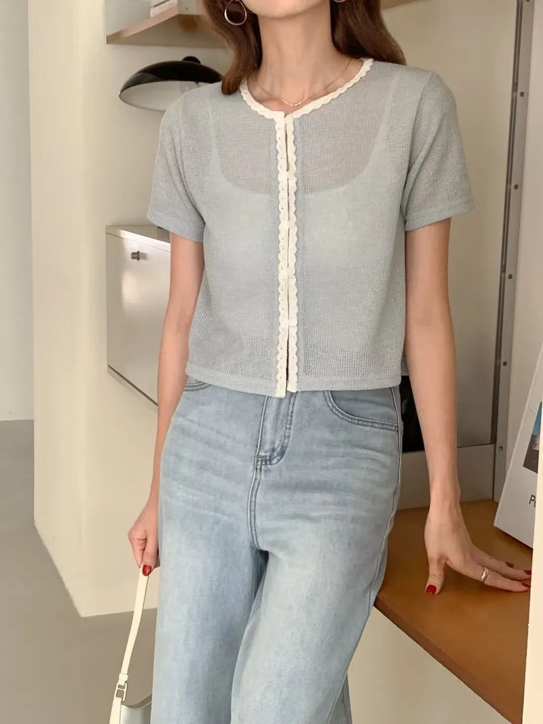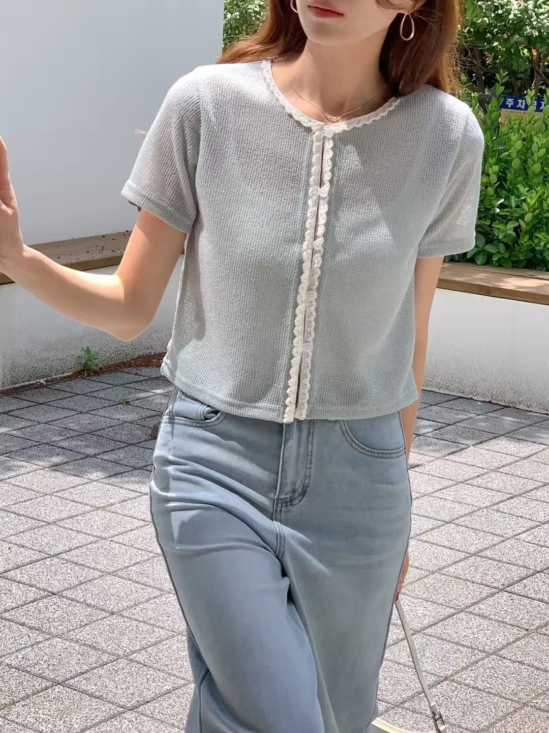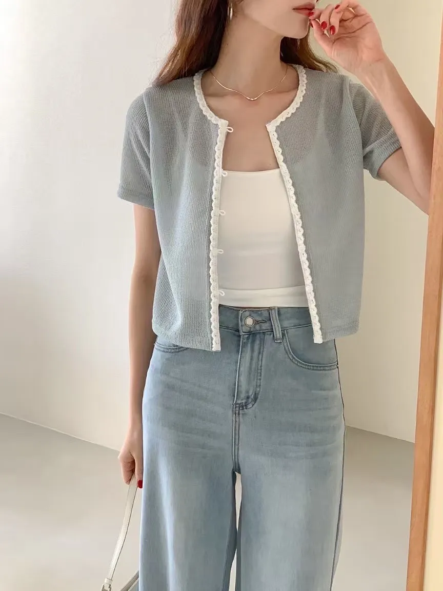 棉+尼龍+聚酯 彈性釦穿脫 蕾絲滾邊 可上衣小外套 L號友善 夏天合適