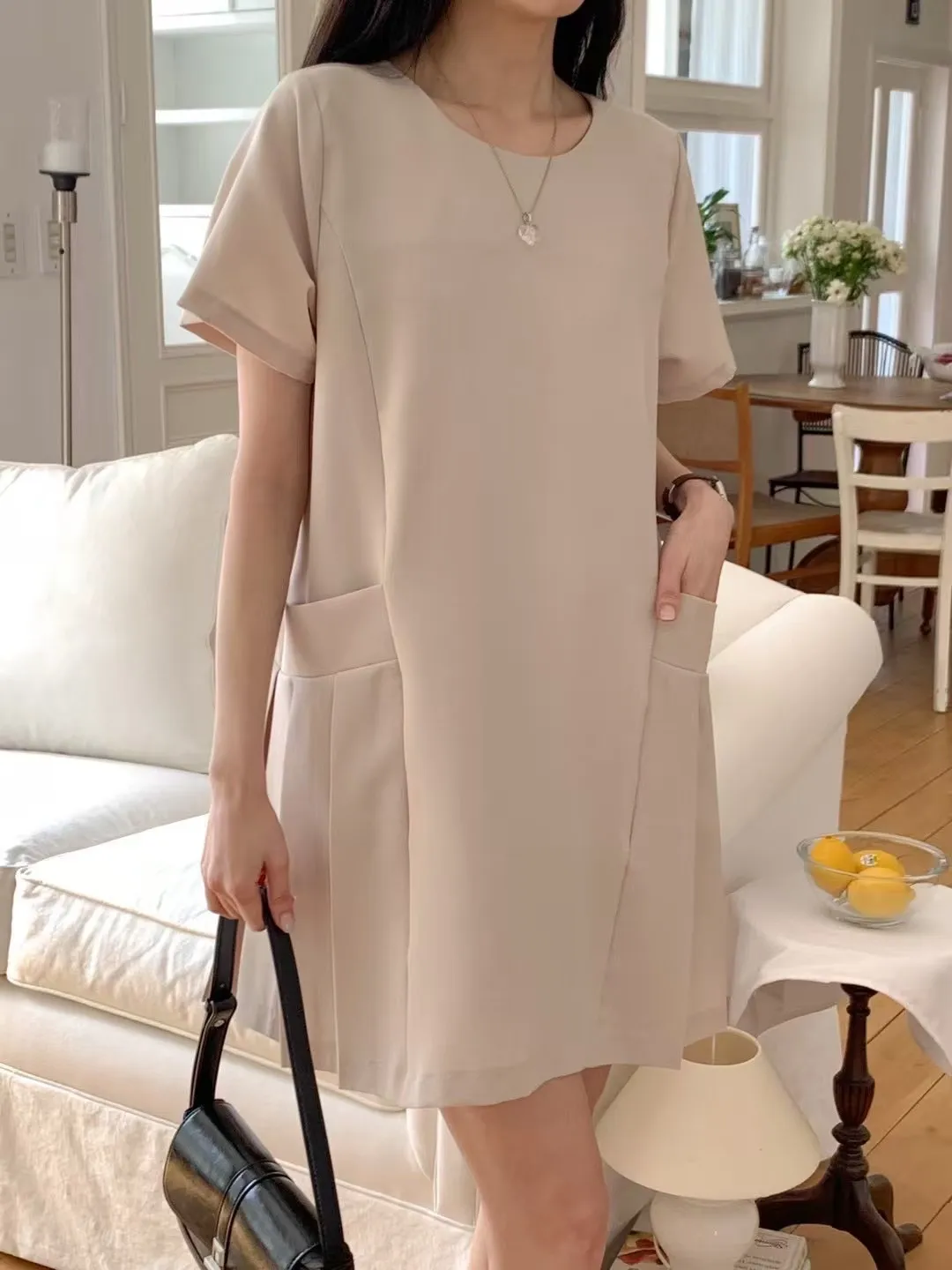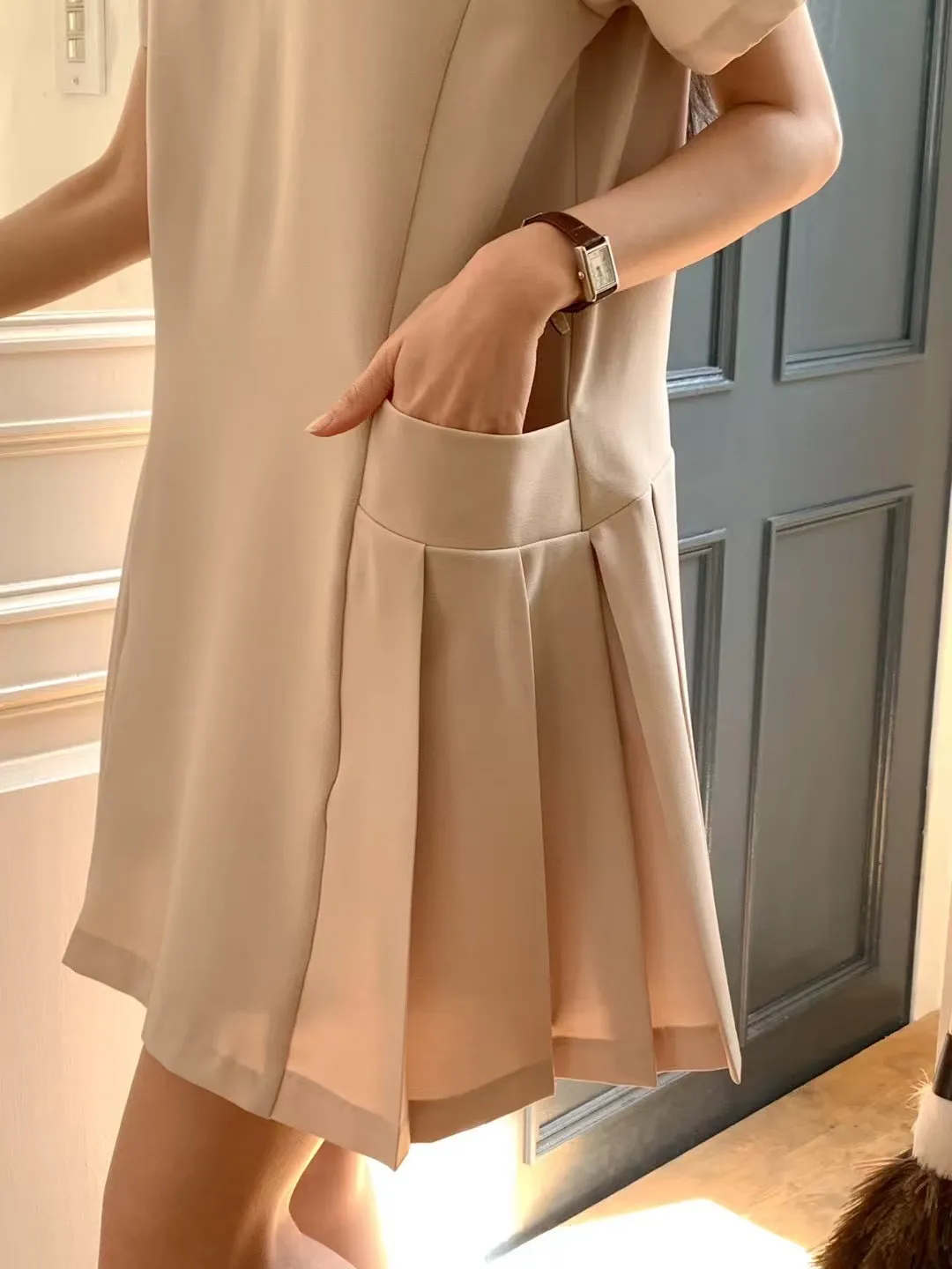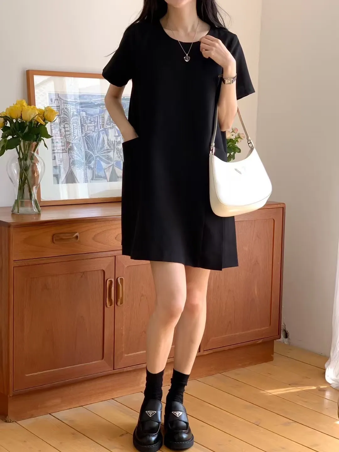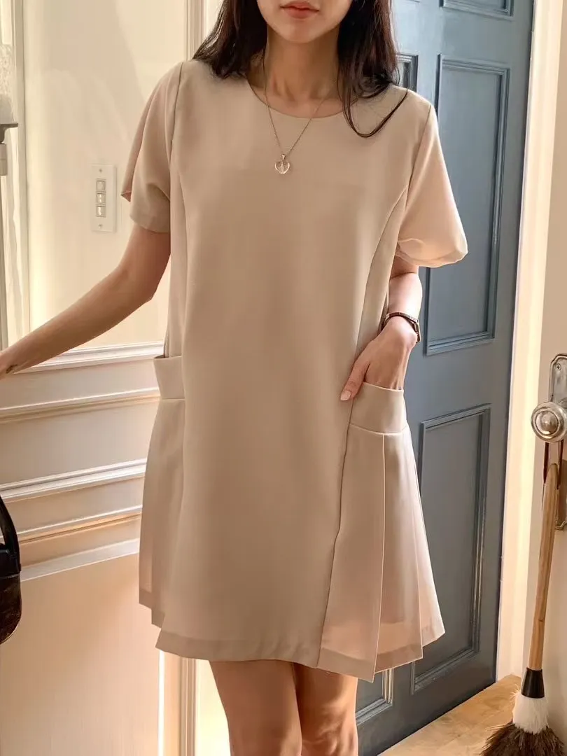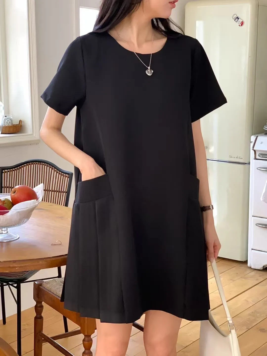 聚酯 不易皺面料 有口袋有內裡 側百褶裙擺 後拉鍊穿脫 適合夏天 L號友善