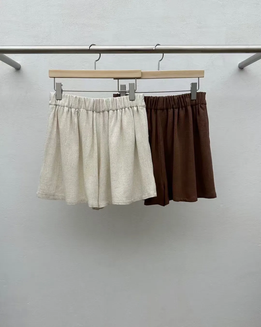 GM446單釦亞麻夏日百搭短褲 米 咖 官網價$990 線上價$960縲縈+亞麻 薄款舒適 釦鍊穿脫 有口袋 後腰鬆緊 夏天活動合適 亞麻面料均有自然植物纖維雜質,非瑕疵。腰寬33-47臀寬62褲檔34全長43以下顏色,米>咖