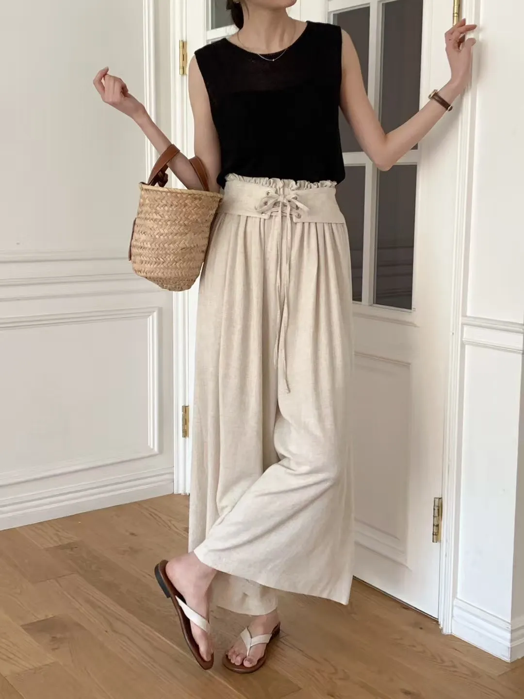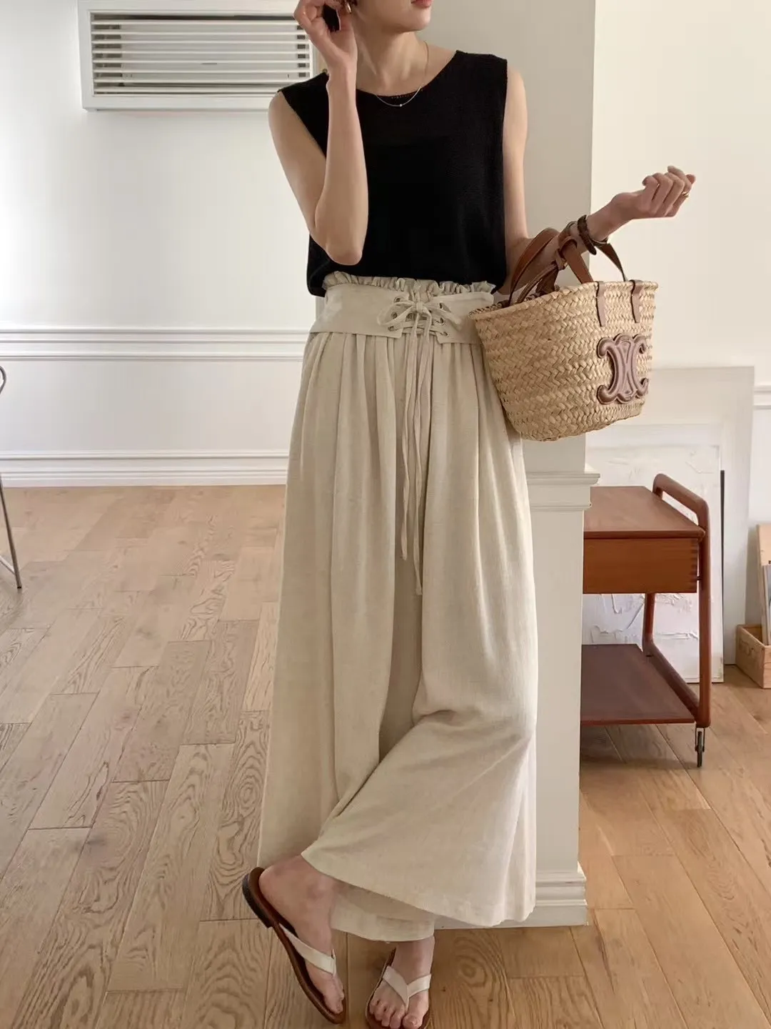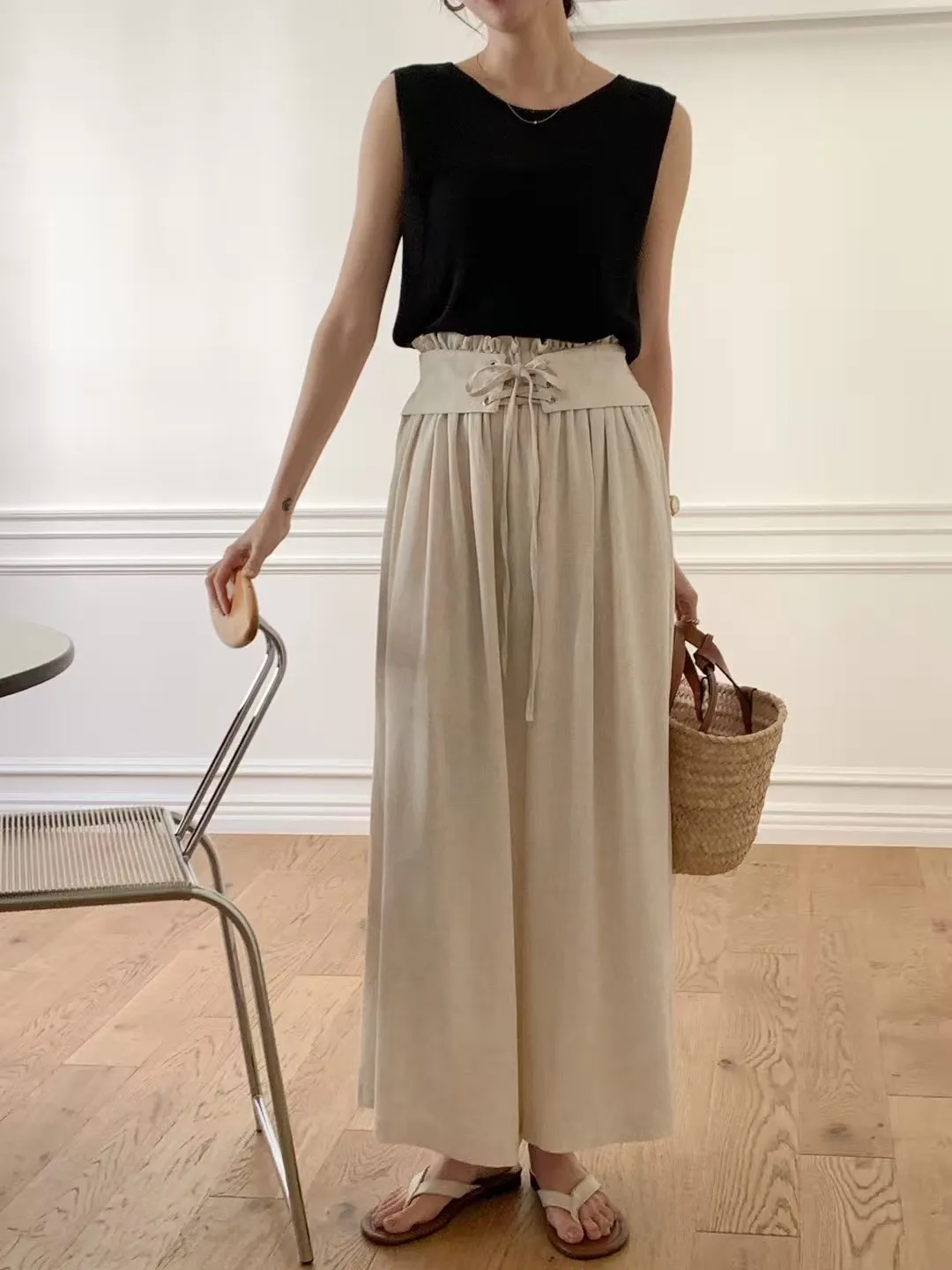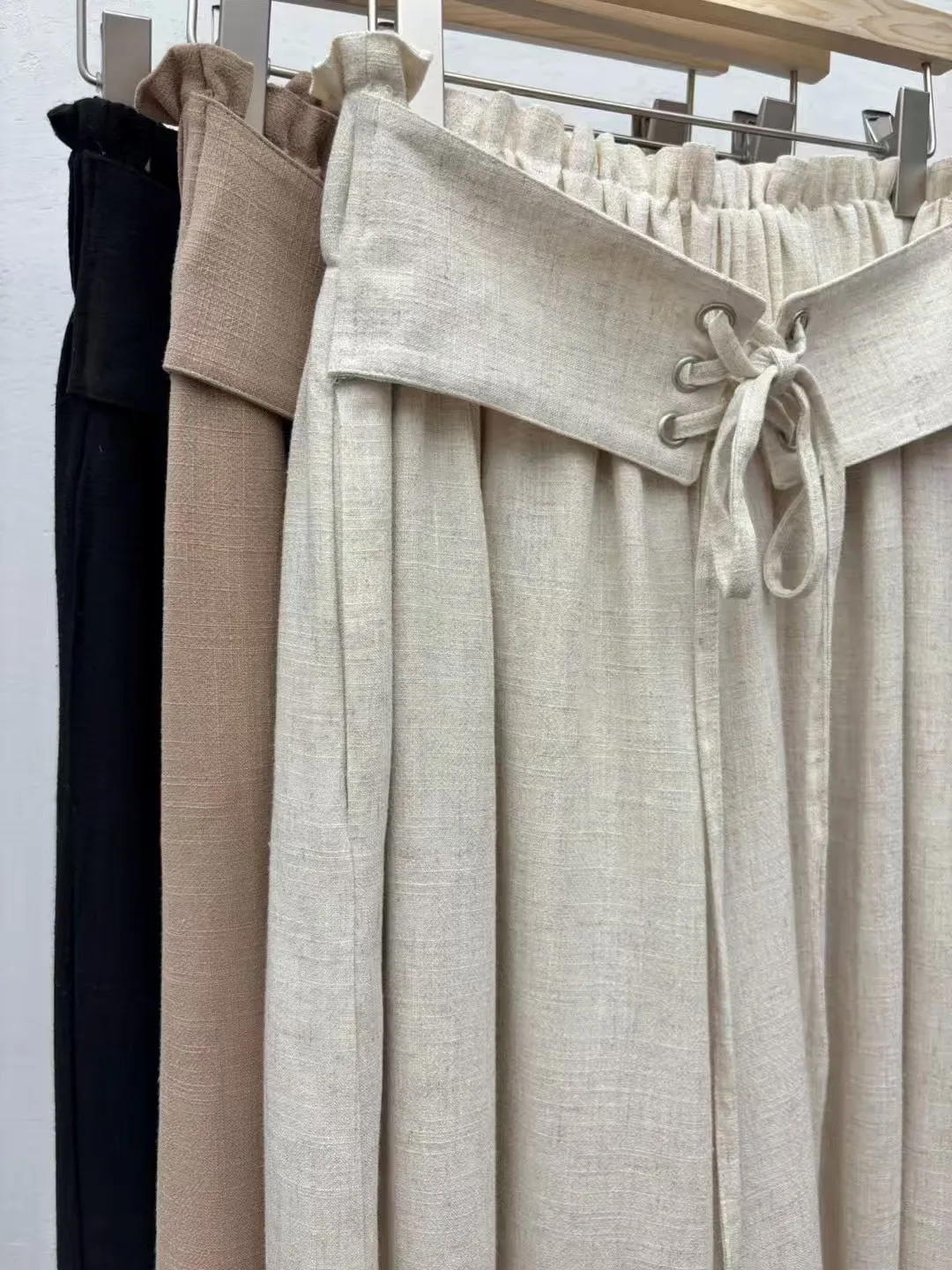 縲縈+亞麻 有內裡 後腰鬆緊 空間友善 腰封遮腹 XL友善