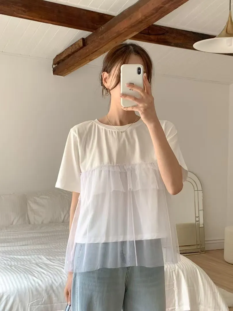 棉+彈力+網紗 柔軟網紗不刺癢 胸縫線有彈性 面料也有彈性