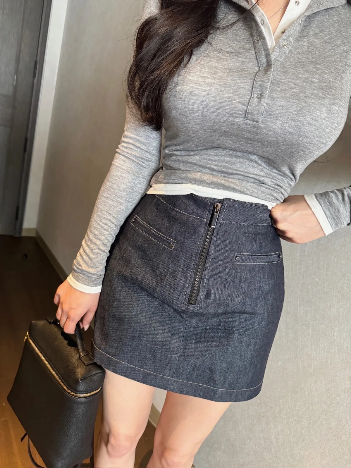 GM481高級訂製拉鍊丹寧牛仔裙 白 藍 S M 官網價$1520 線上價$1490棉 專櫃品牌感 高級訂製款 高腰版型 拉鍊穿脫 有口袋 直播中,亮亮穿白S,lulu穿藍M,兩個人都剛好合身S腰寬34臀寬45全長38M腰寬35.5臀寬46.5全長39以下藍色穿搭👇🏻