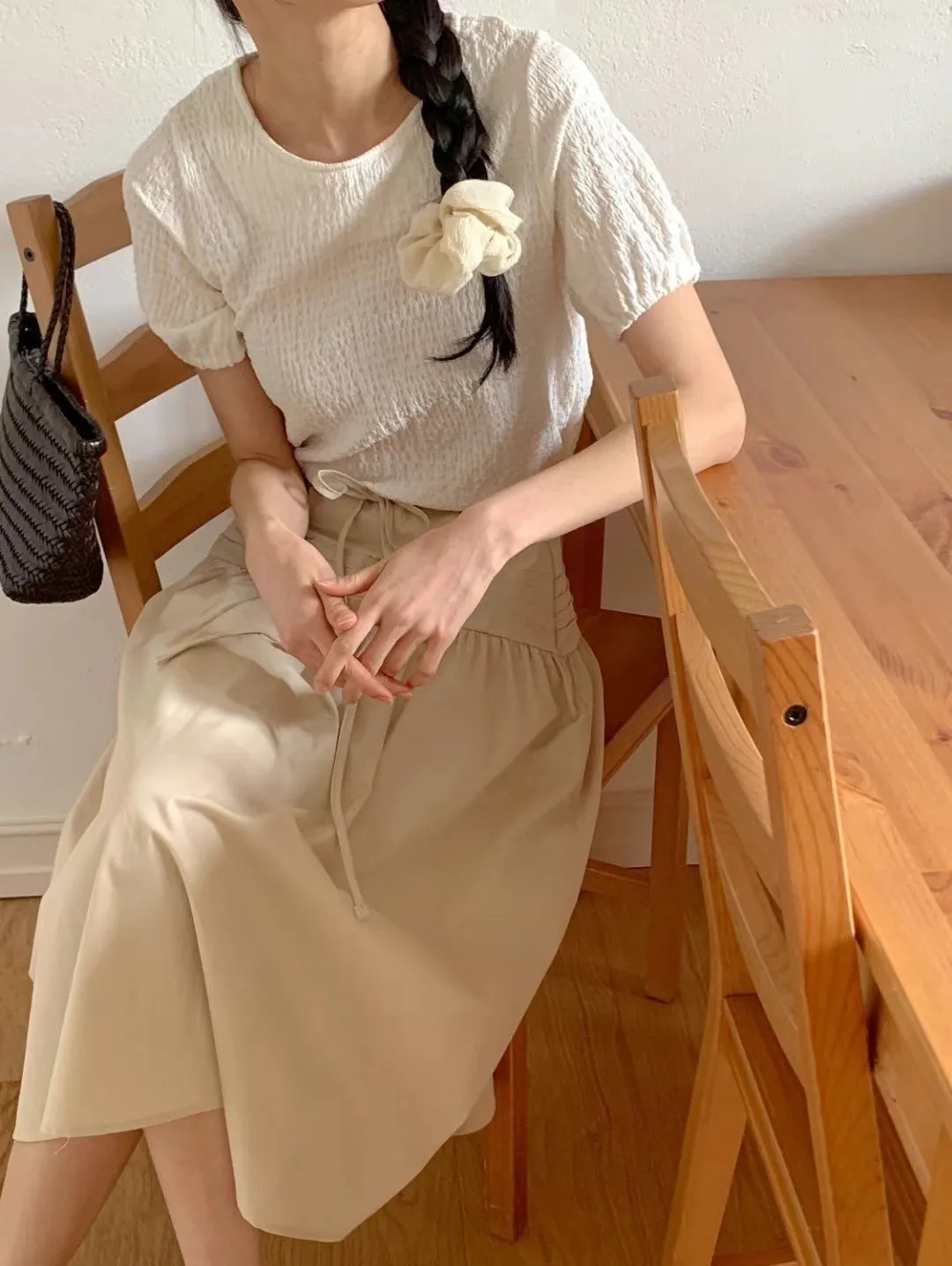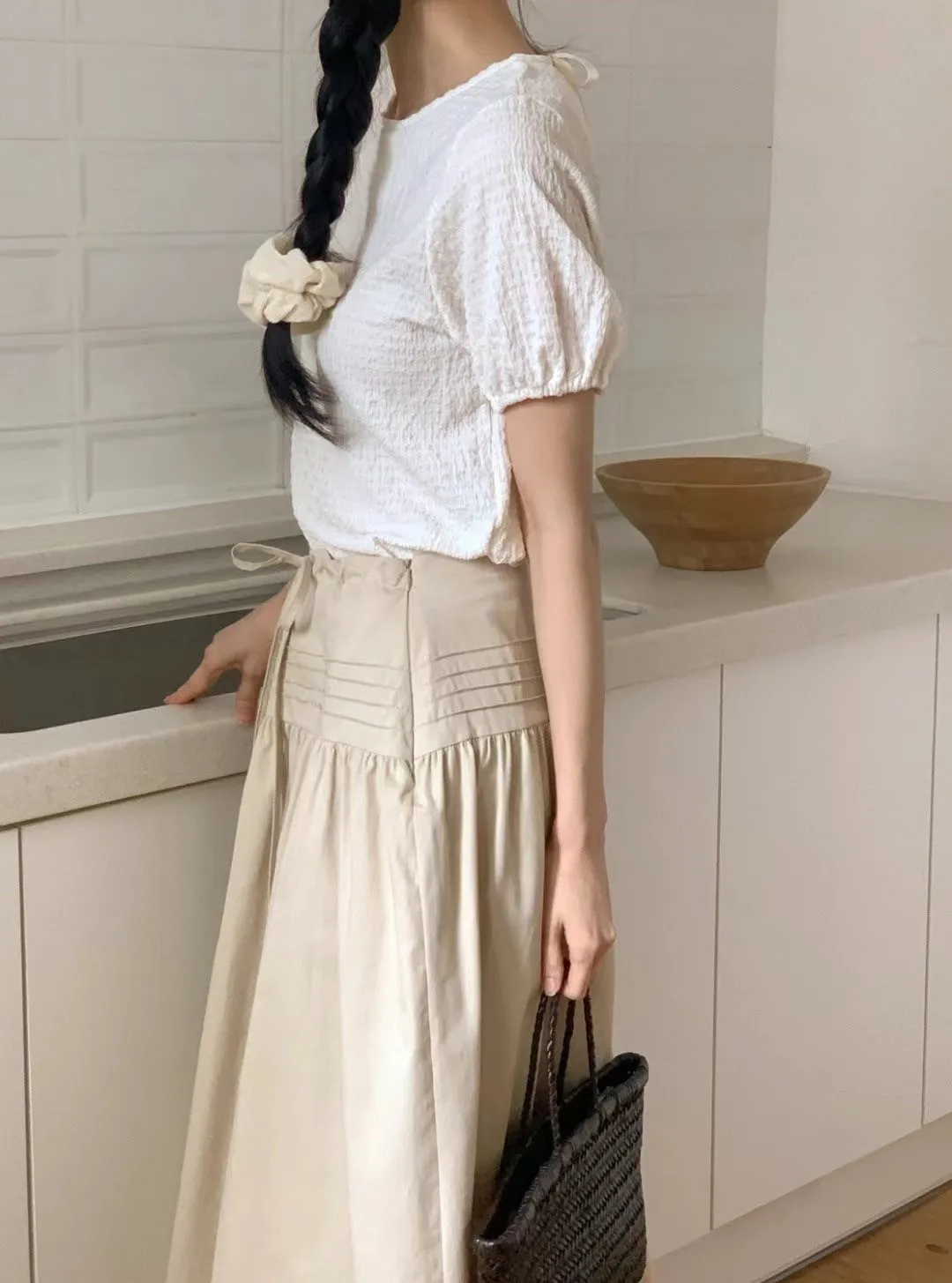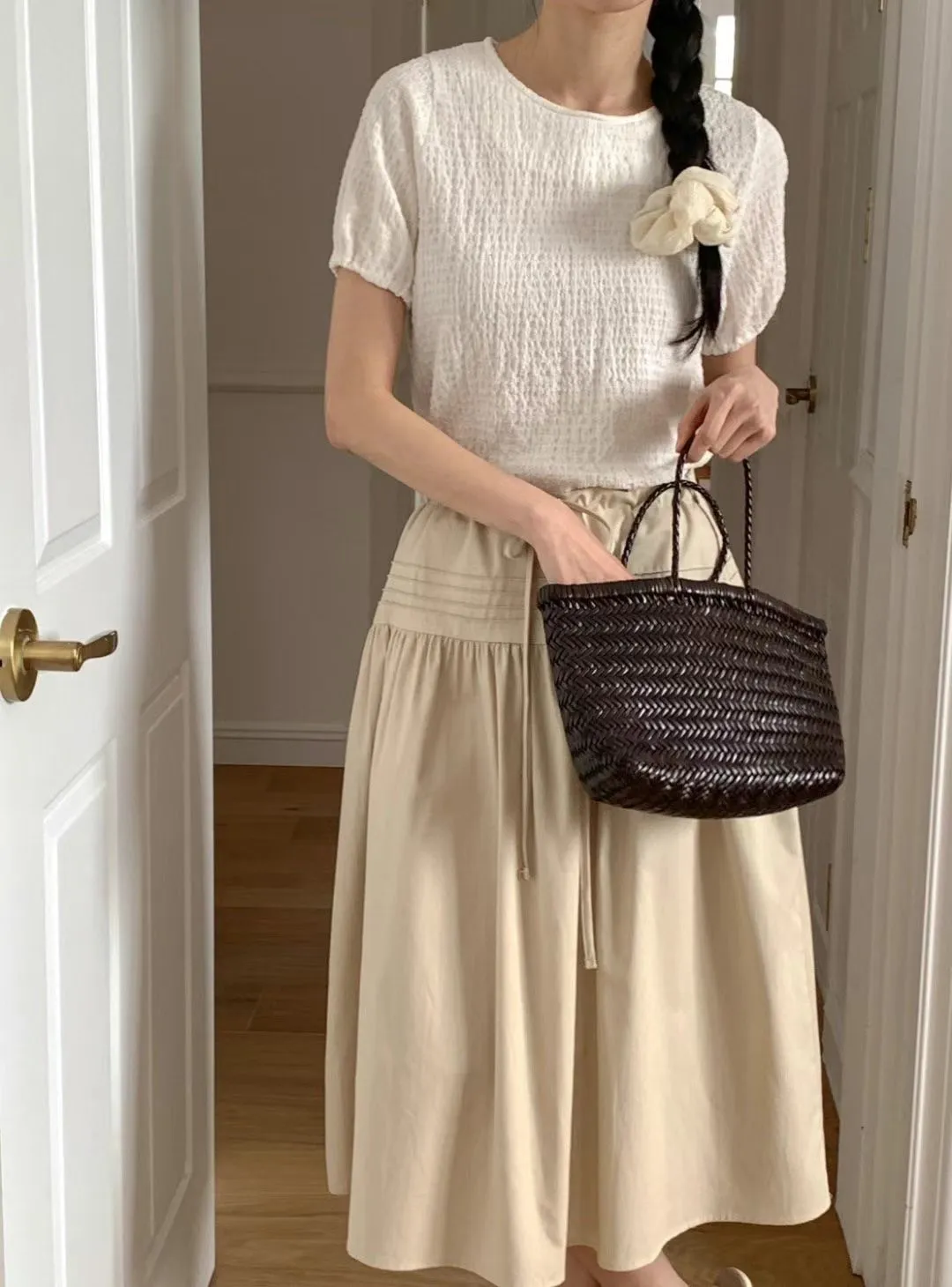 棉,腰綁帶設計 自然Aline傘擺 拉鍊穿脫