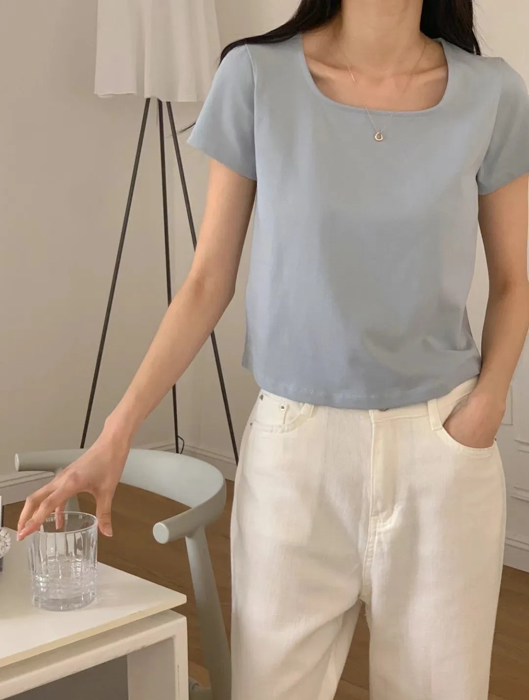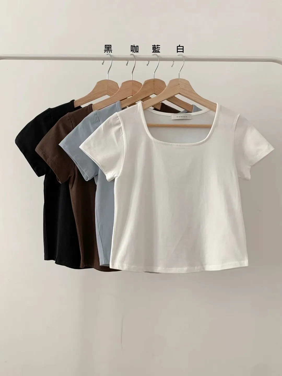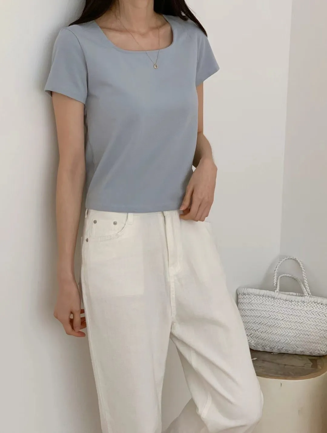 棉+彈力 透氣舒適 微彈性 顯瘦方領 適合夏天