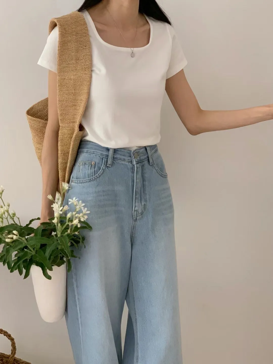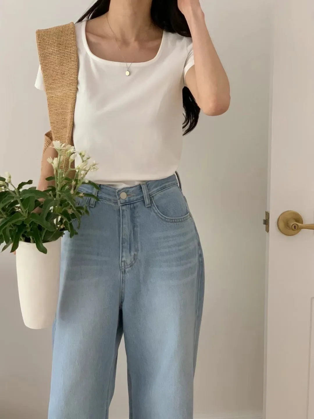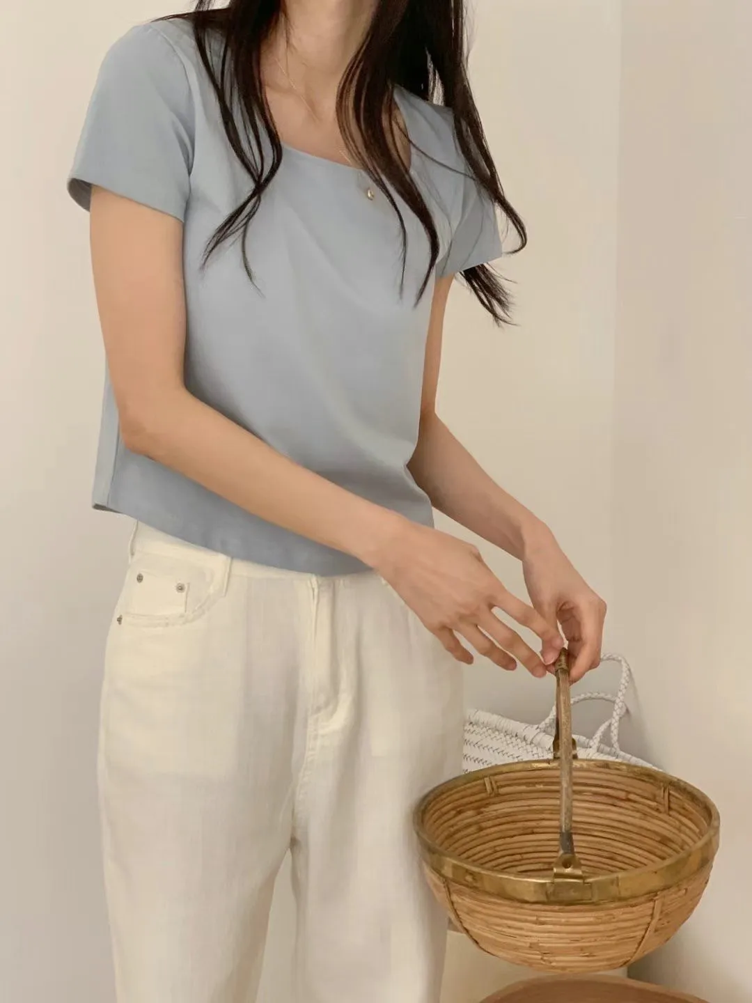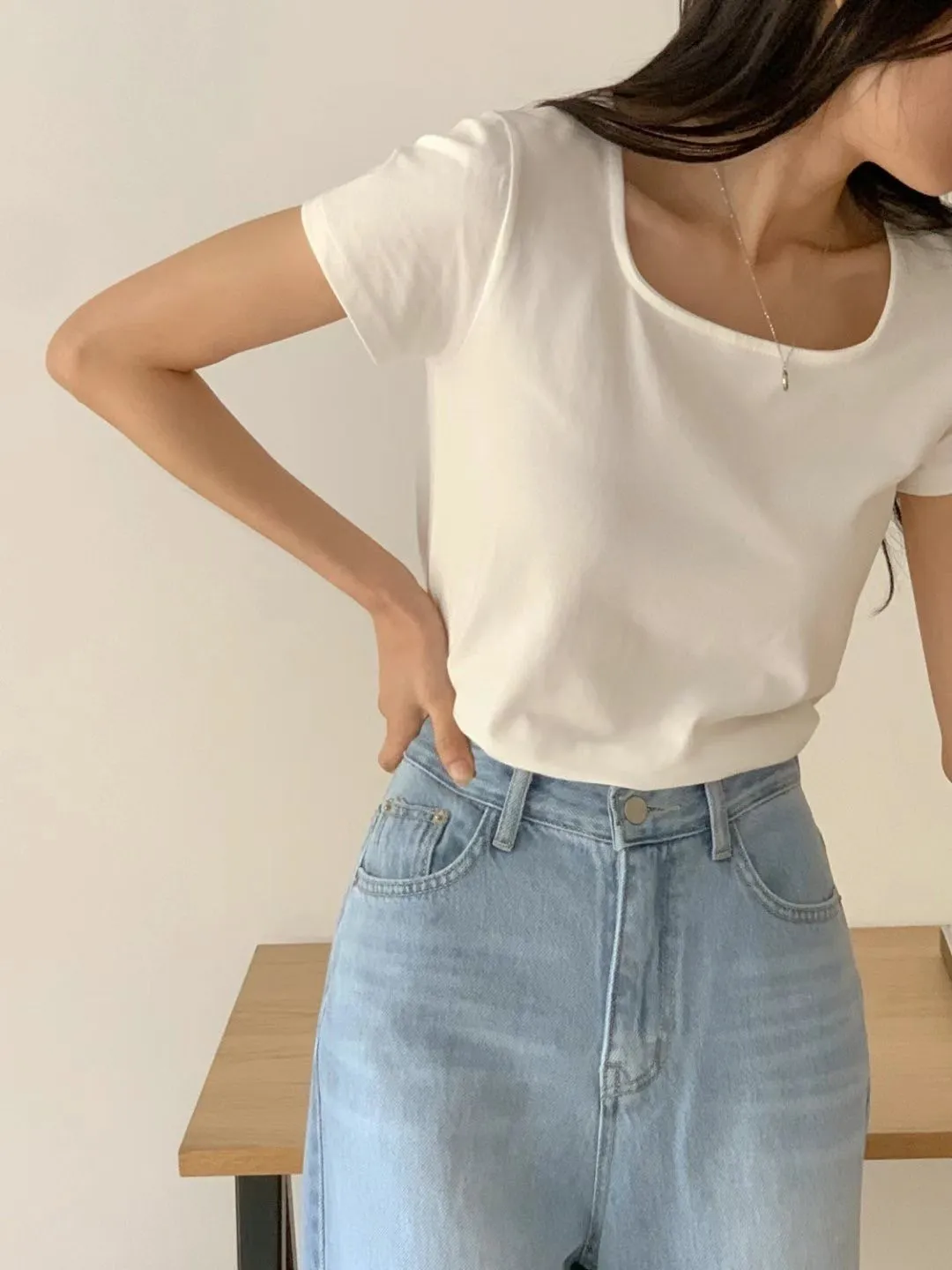 棉+彈力 透氣舒適 微彈性 顯瘦方領 適合夏天