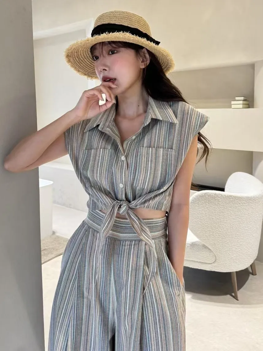 棉+聚酯 胸前雙口代 腰綁帶遮腹露腰顯腿長 蓋袖設計