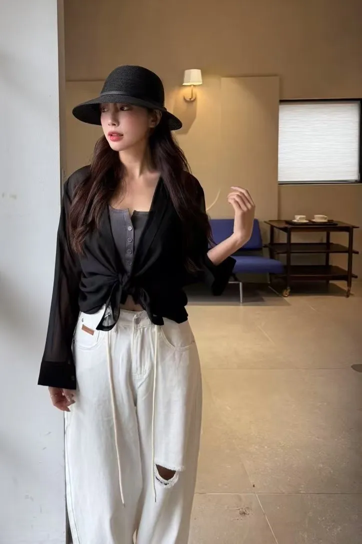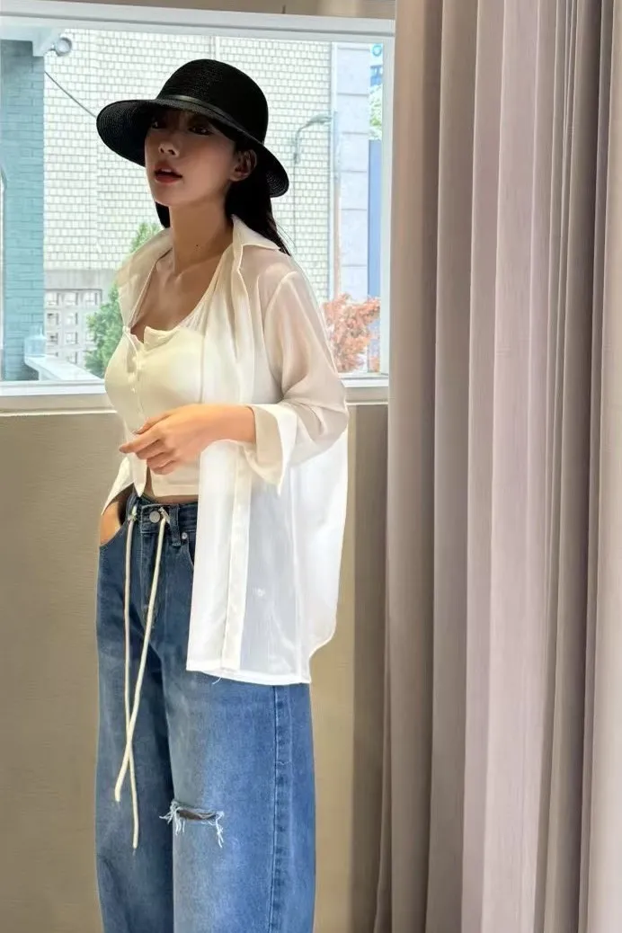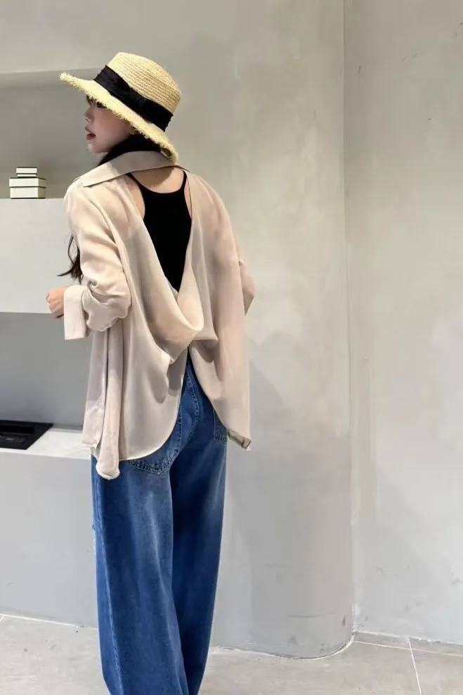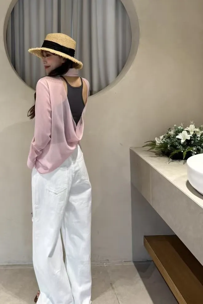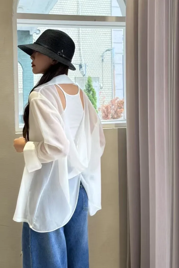 聚酯 薄款透光 背後簍空小性感 適合夏天 層次搭配單品