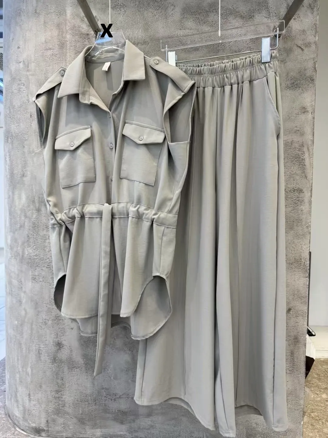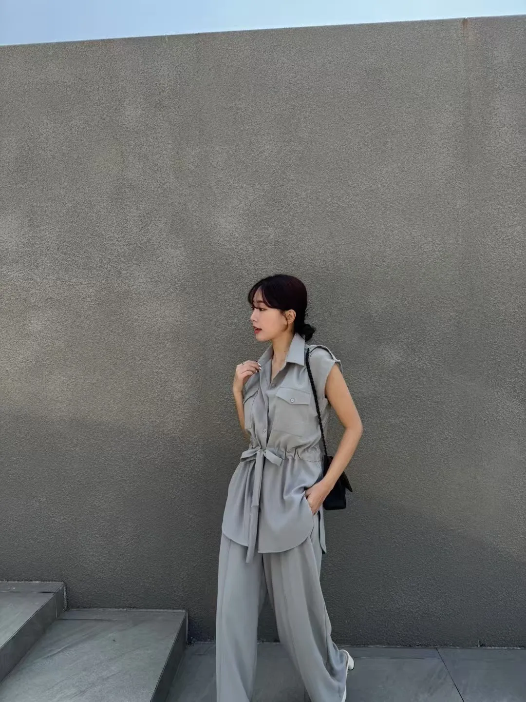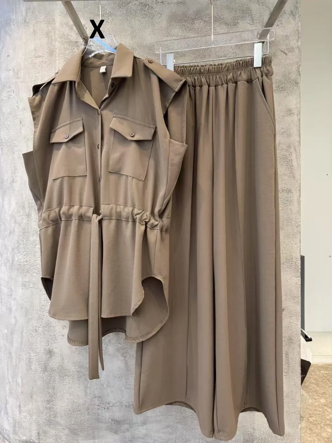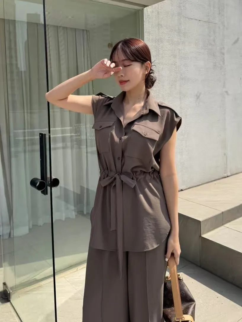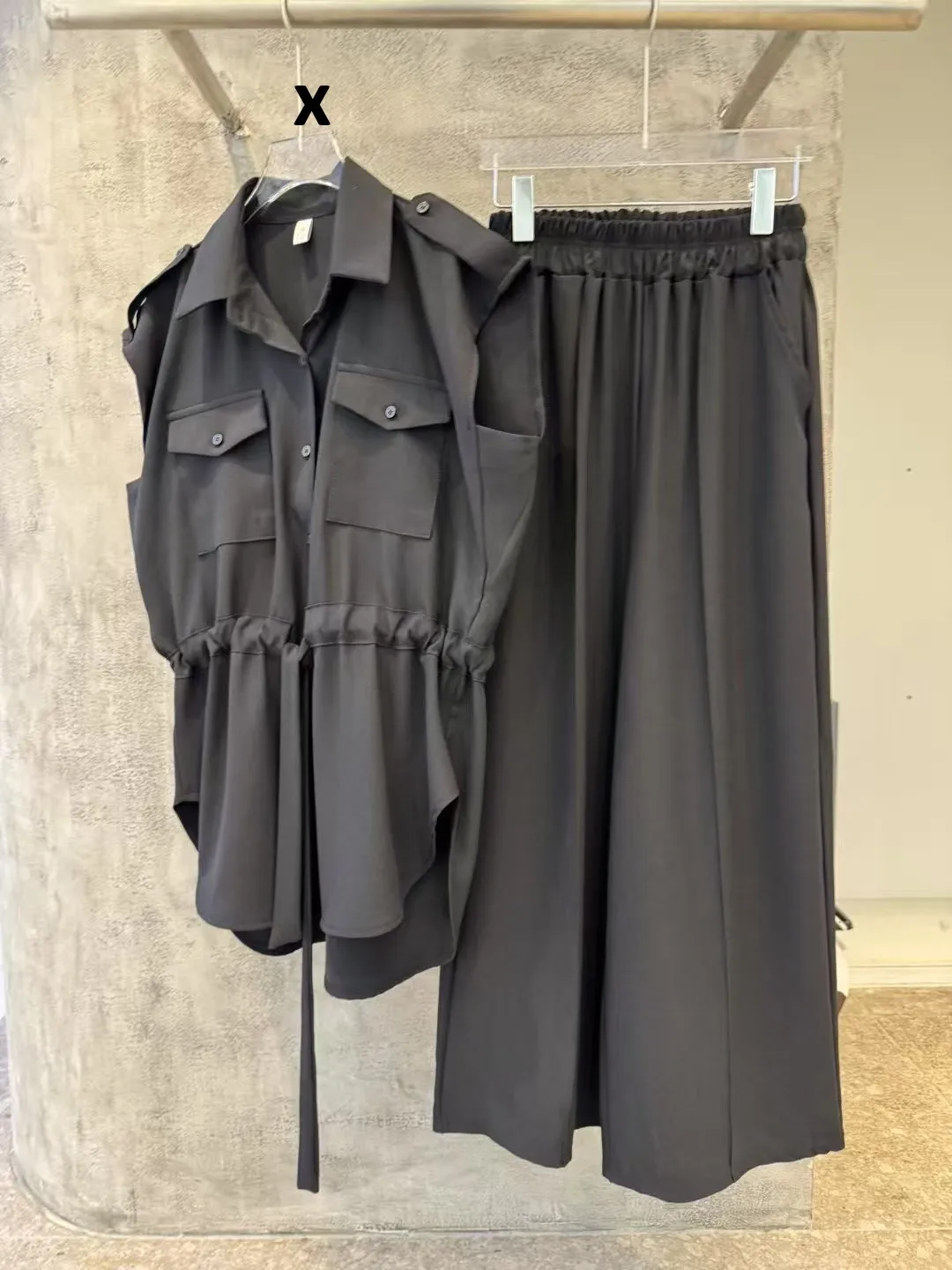 聚酯+彈力 自然垂墜美感 不易皺 全腰鬆緊 褲管單摺線 有口袋