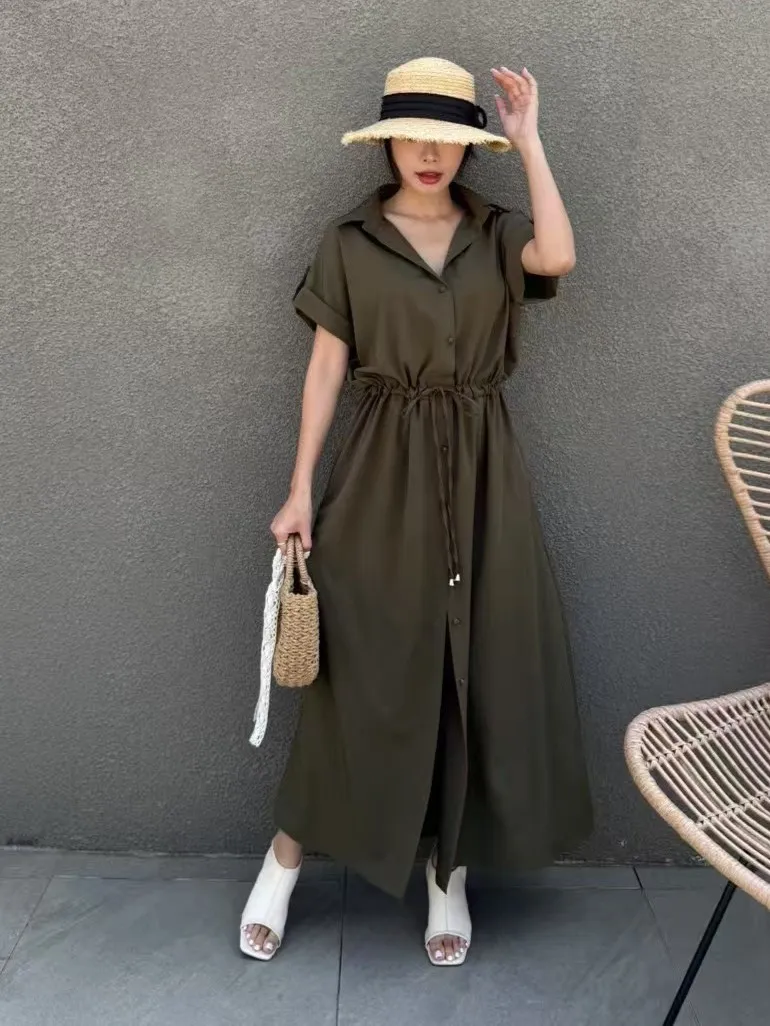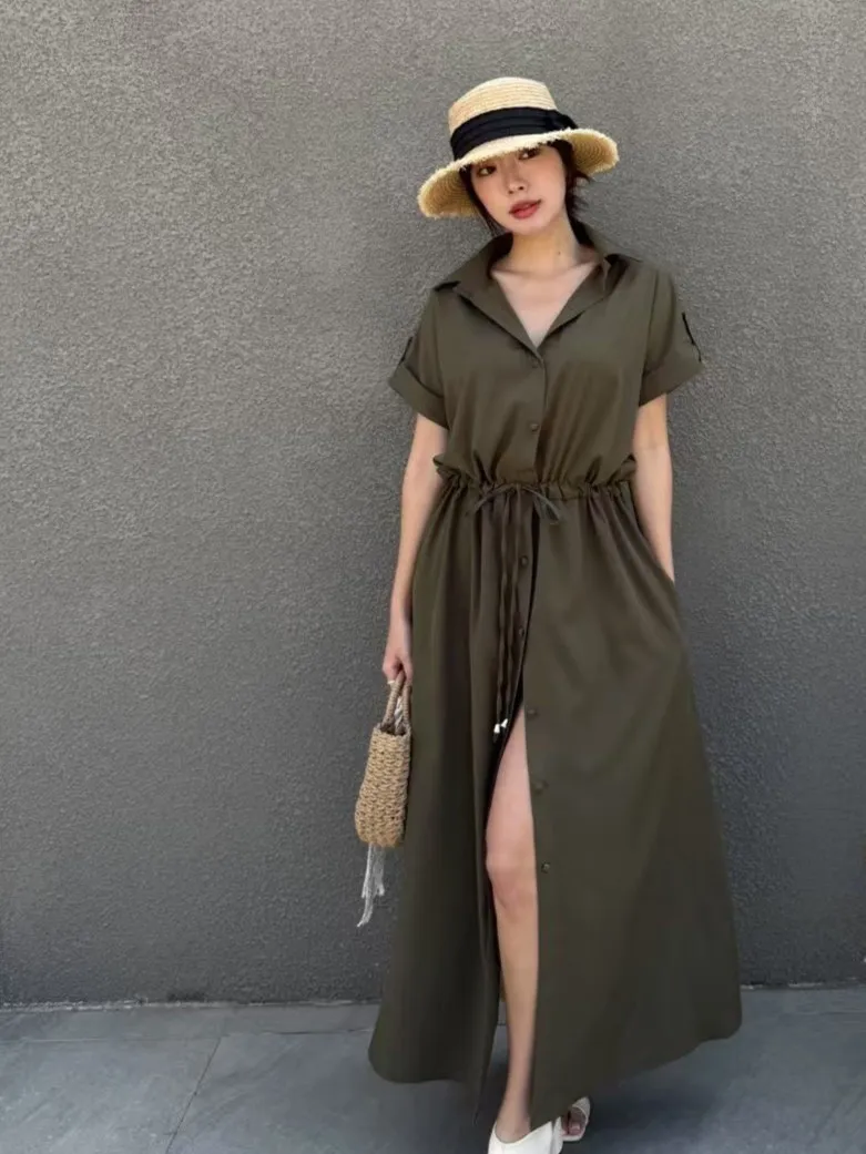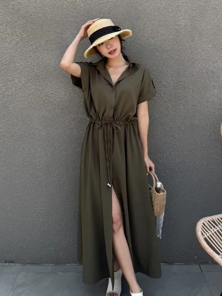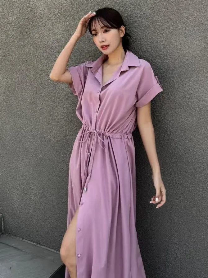 雪紡 排釦穿脫 腰綁繩 無內裡 空間友善 有口袋 XL友善 袖反摺