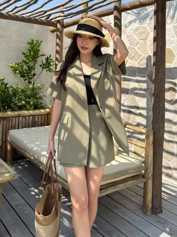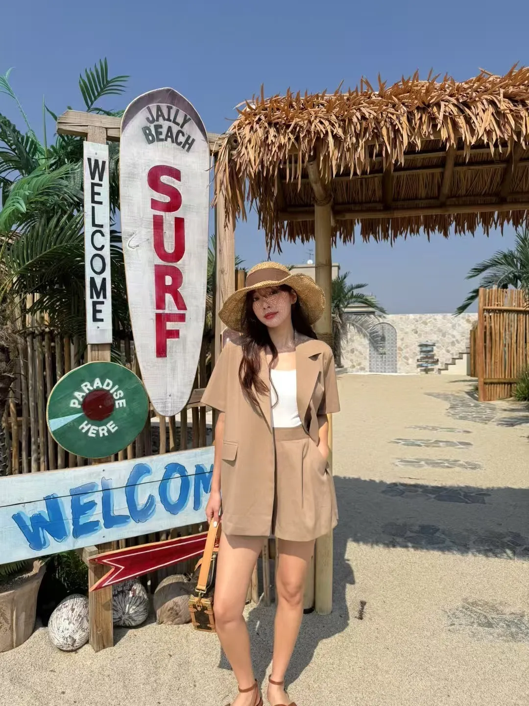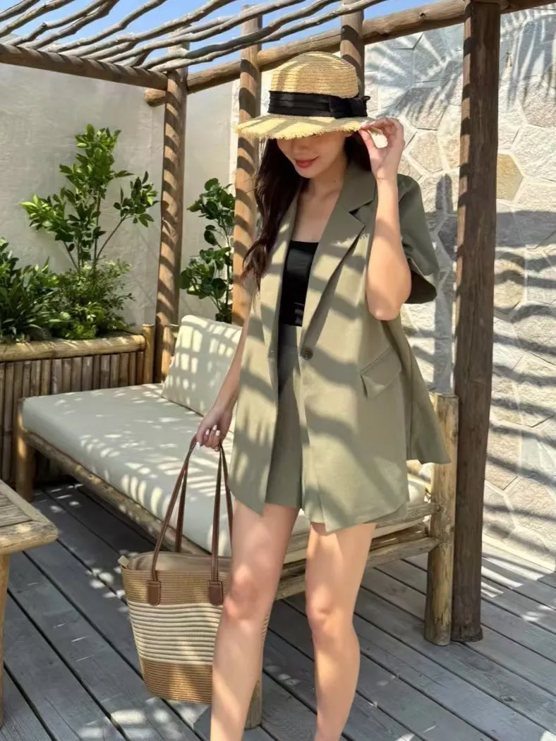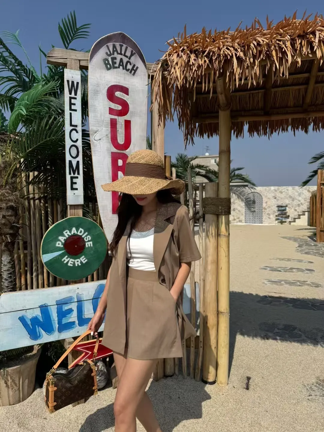 亞麻+聚酯 推薦款 版型好看 顏色高級 有口袋 後交疊開叉