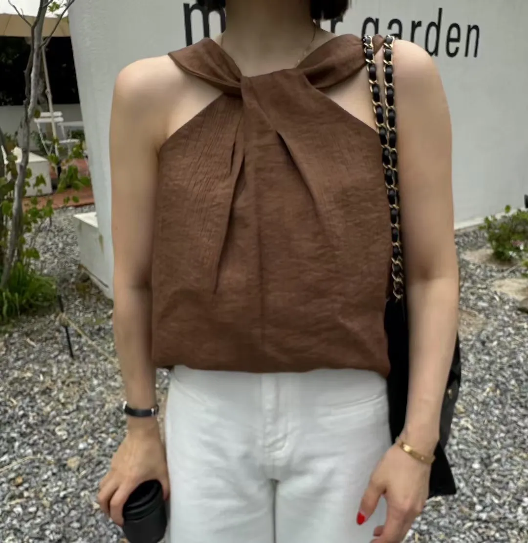 GM571推薦款氣質交叉天絲美衣 咖 黑 官網價$1020 線上價$990