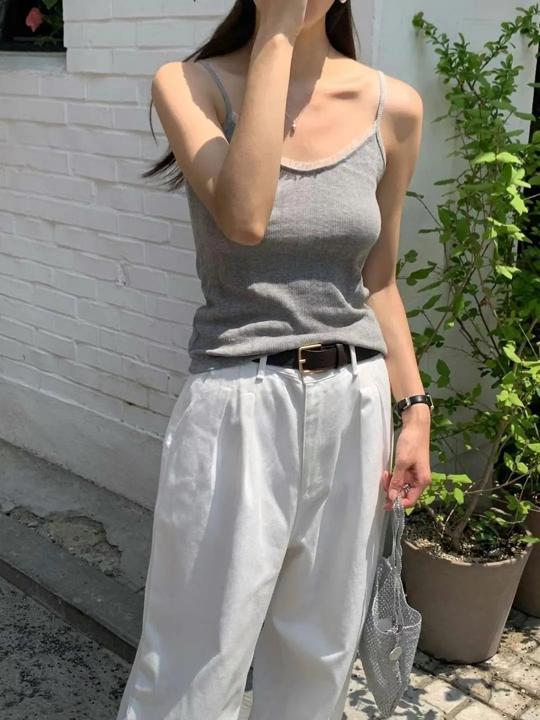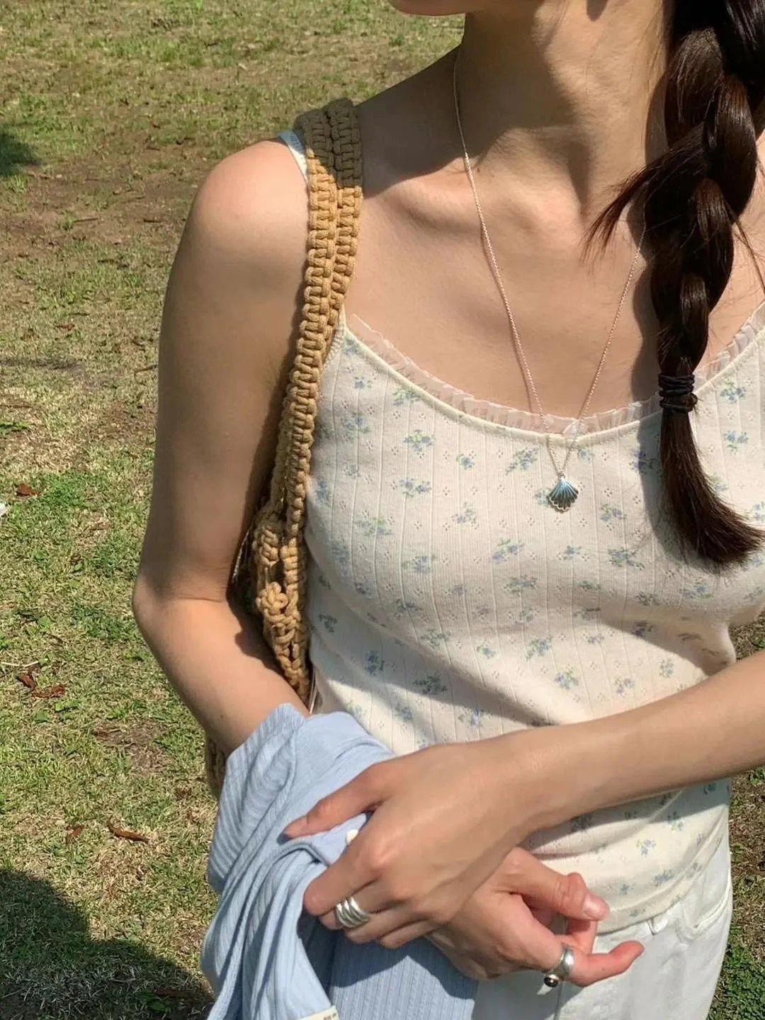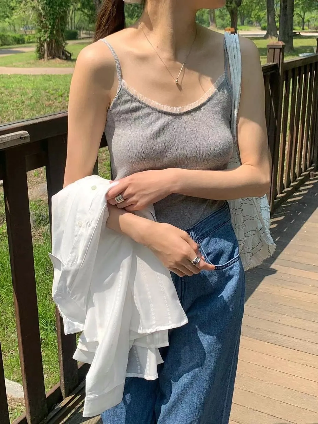 GM607細肩帶蕾絲滾邊背心 白 灰 小花 官網價$390 永恆甜甜價$360