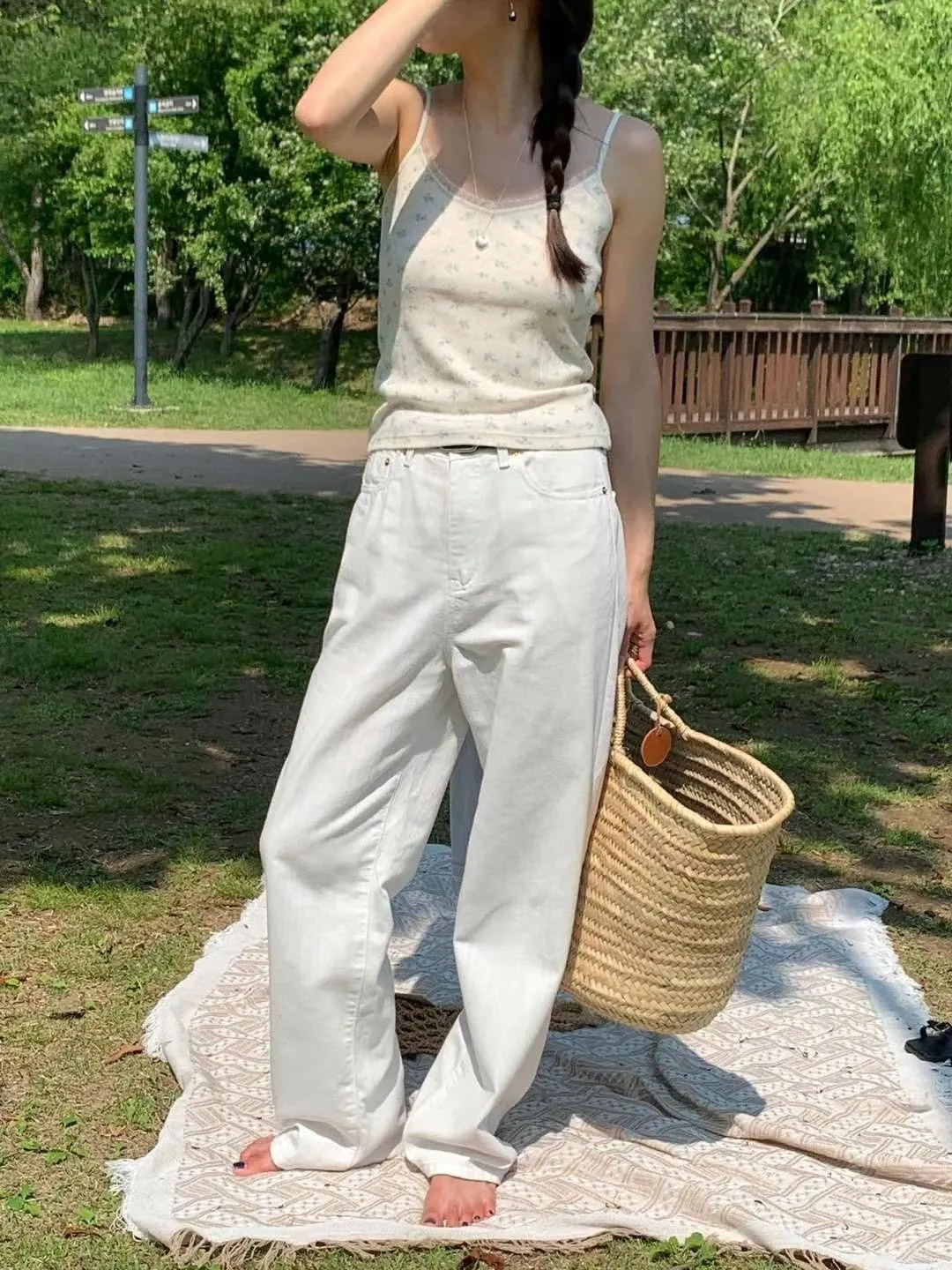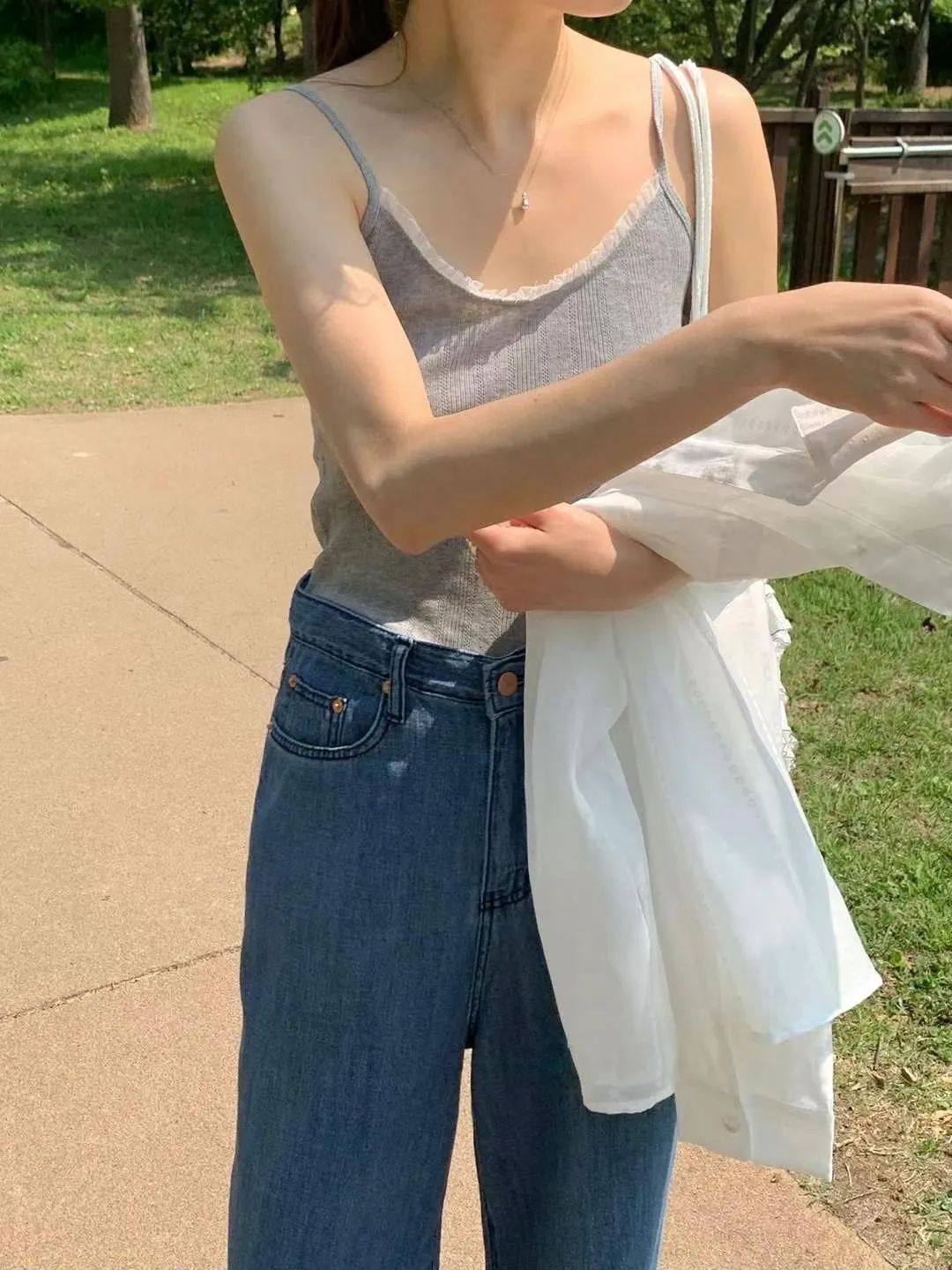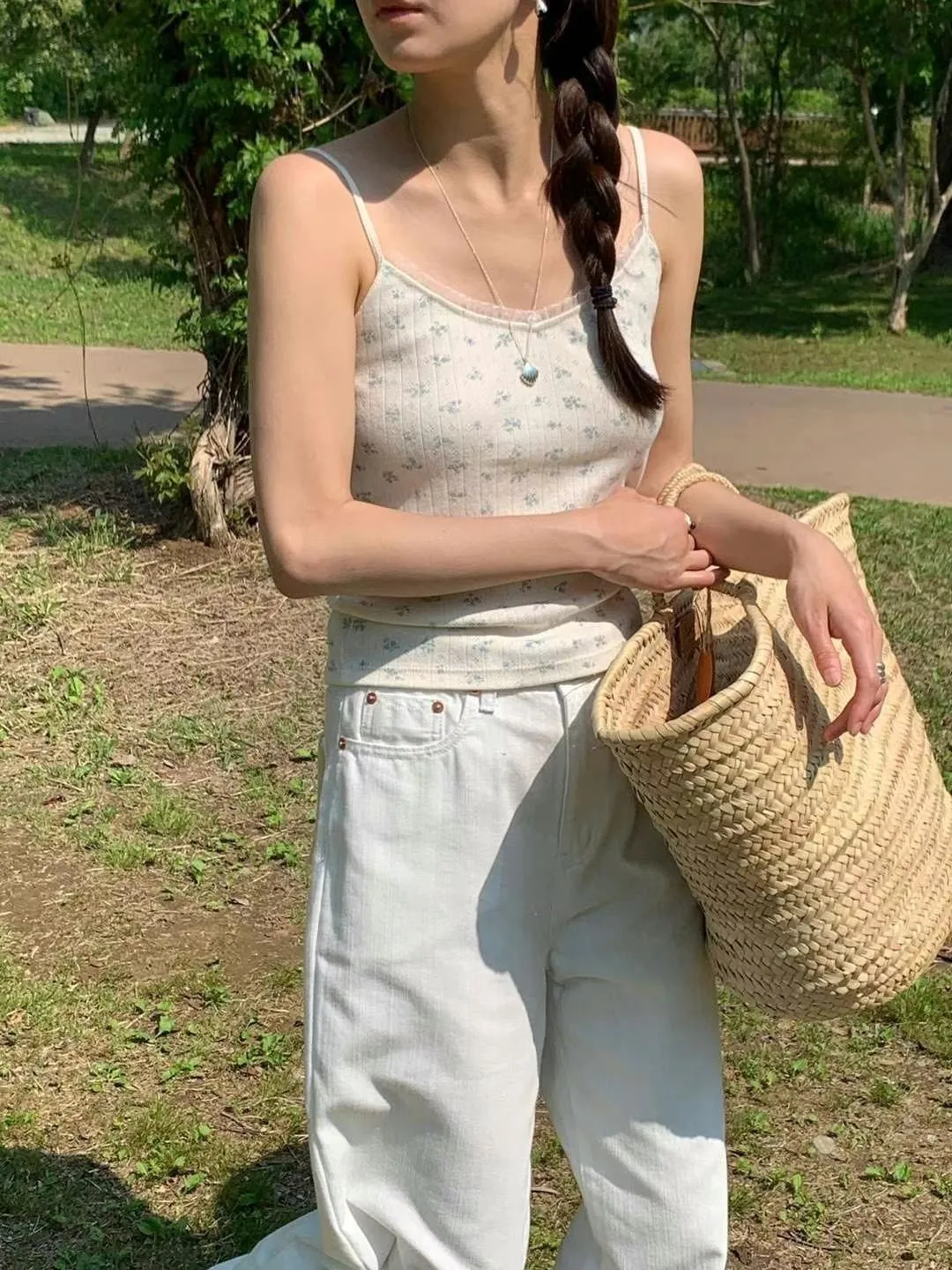 GM607細肩帶蕾絲滾邊背心 白 灰 小花 官網價$390 永恆甜甜價$360