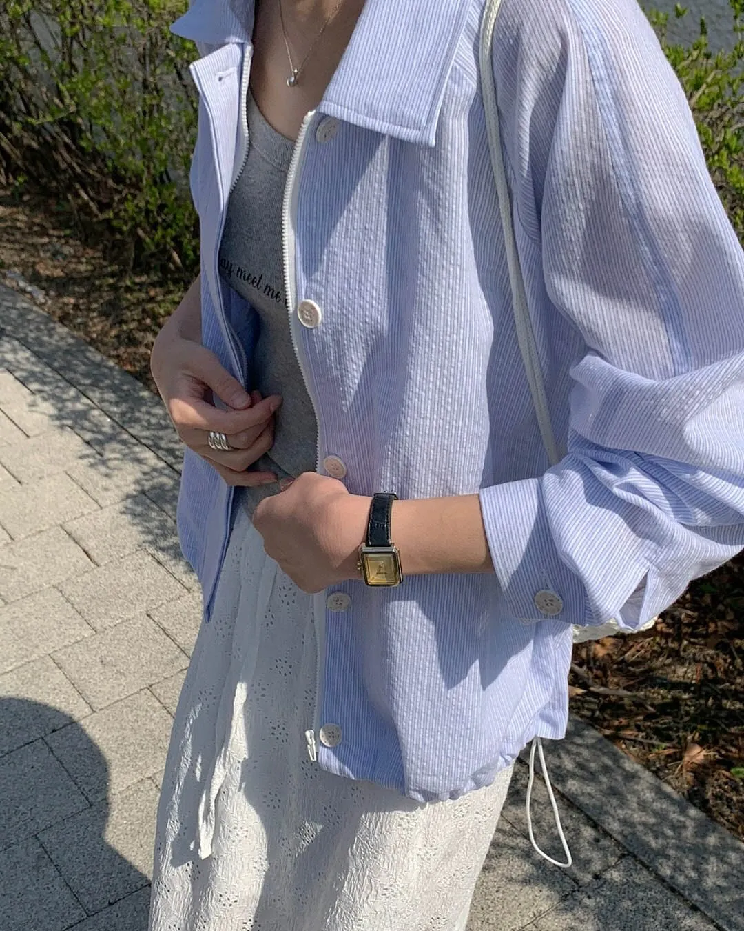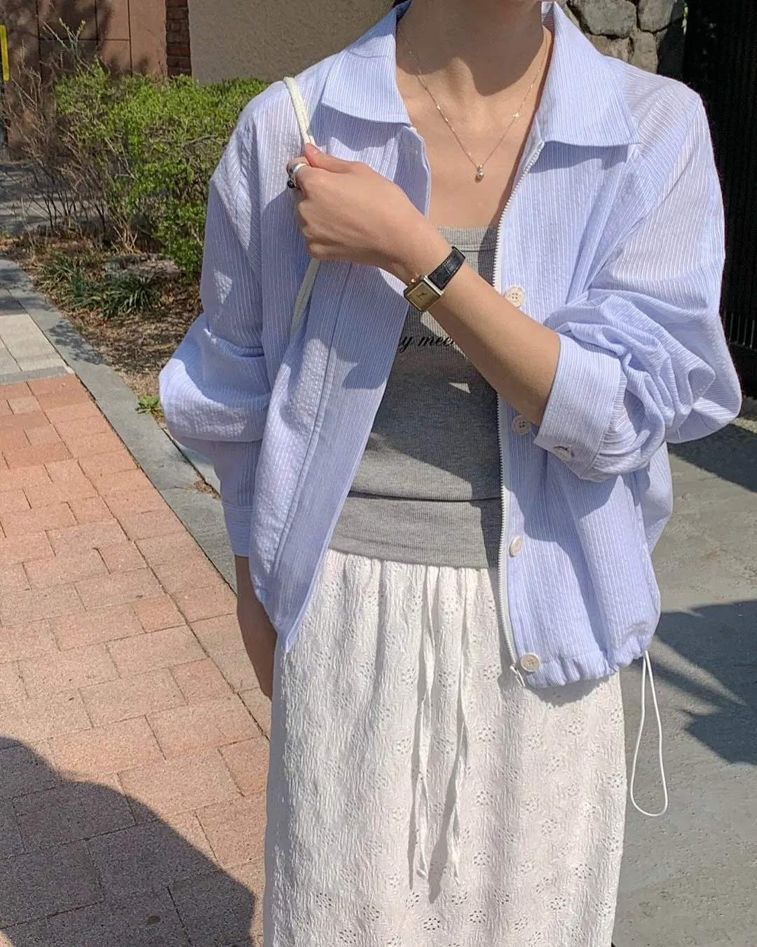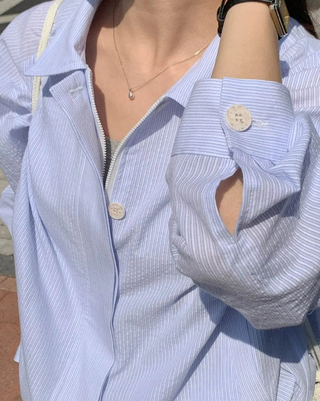 GM623薄款細條紋拉鍊釦子外套 官網價$1120 永恆甜甜價$1090