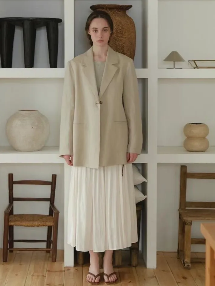 棉+亞麻 側邊內裡 單釦設計 有口袋 背後開叉